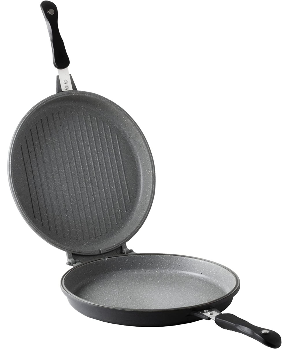 Fornetto per preparare la pizza per i tuoi amici e tifare con gusto! Prodotto composto da due piastre removibili, utilizzabili anche singolarmente. Questo rende il prodotto perfetto per cuocere pizza o focaccia come un fornetto, ma anche per grigliare o piastrare. E' l'ideale per cucinare pizza e focaccia durante i mesi estivi, perché a differenza del forno non riscalda ulteriormente la casa. E' dotato di eccezionali proprietà antiaderenti, grazie al rivestimento Petravera Plus, rinforzato con particelle minerali, per una cucina senza aggiunta di olio o grassi. (PFOA e NICHEL free) Inoltre è provvisto di un doppio manico antiscottatura e chiusura magnetica delle due piastre per una presa salda e sicura. Il rivestimento esterno siliconico nero è stato selezionato per un prodotto elegante in cucina destinato a durare nel tempo. Prodotto dotato di area di scolo e foro di sfogo per il vapore. Corpo pressofuso in alluminio 100% riciclato.