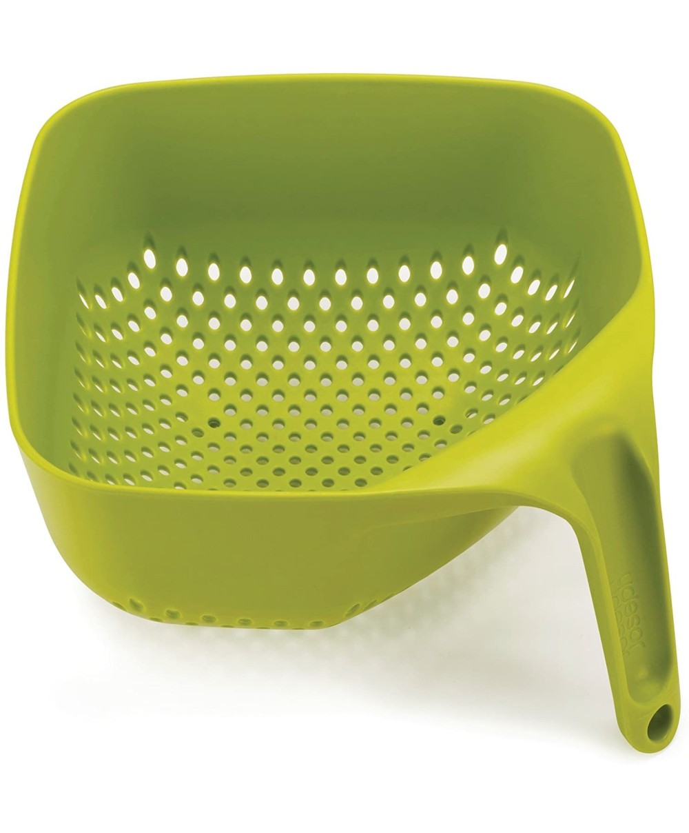 "Questo scolapasta quadrato elegante e funzionale rende ancora più facile scolare il cibo grazie alla sua forma ergonomica unica e al manico verticale che lo mantiene in posizione verticale e stabile quando è appoggiato.