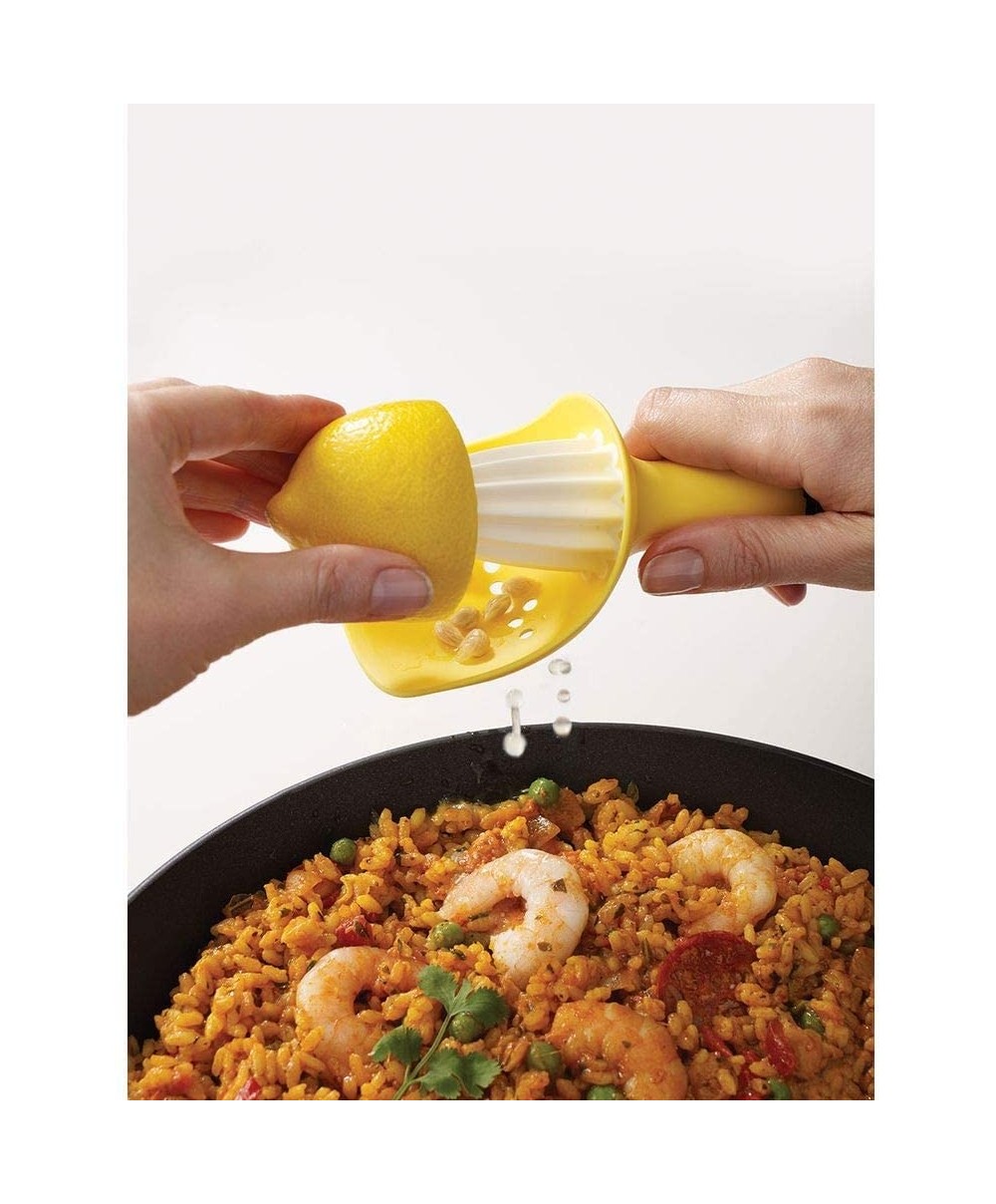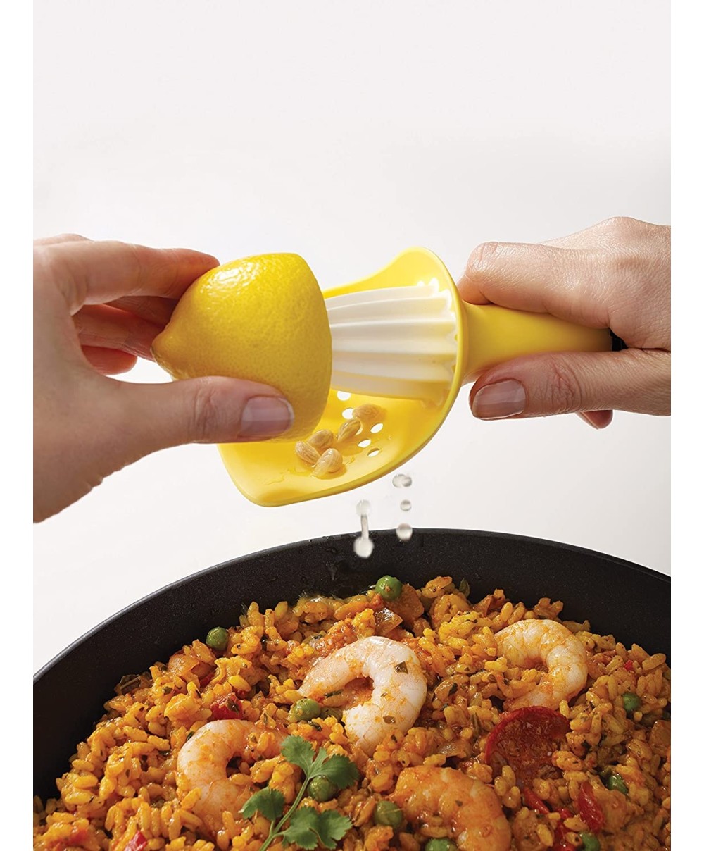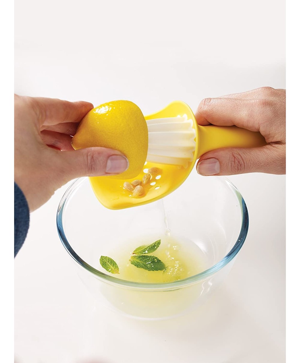 Il design intelligente dello spremiagrumi Joseph Joseph cattura tutti i semi e la polpa della frutta lasciando defluire solo il succo.