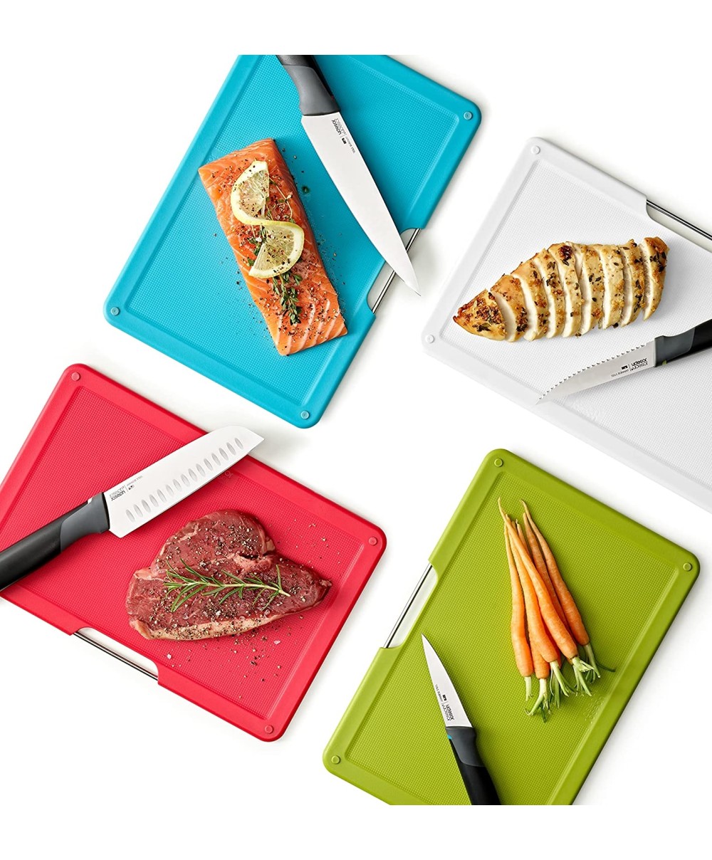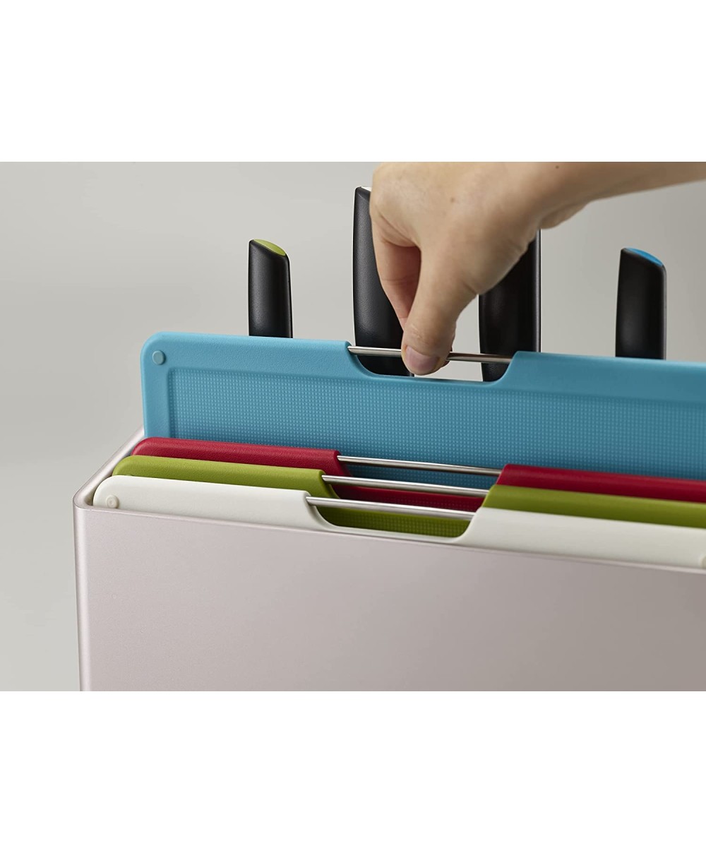 60198 è il set di Joseph Joseph che ti permetterà di mantenere tutti i tuoi utensili da taglio ben organizzati. È composto da 4 taglieri, con colori differenti, organizzati in schede e da quattro coltelli Elevate™ corrispondenti.