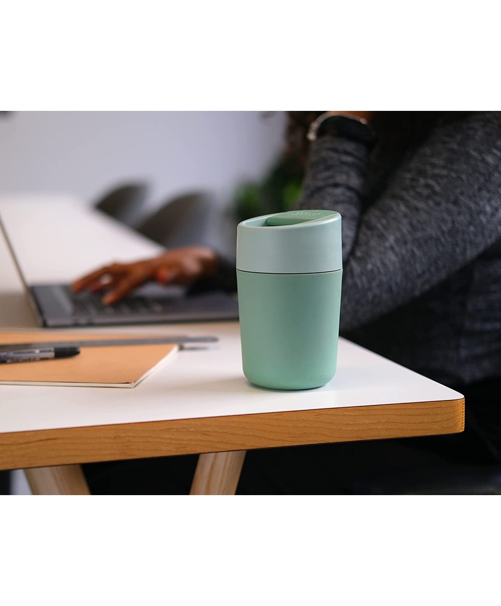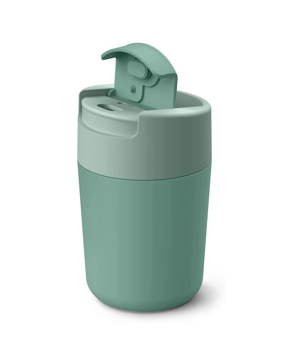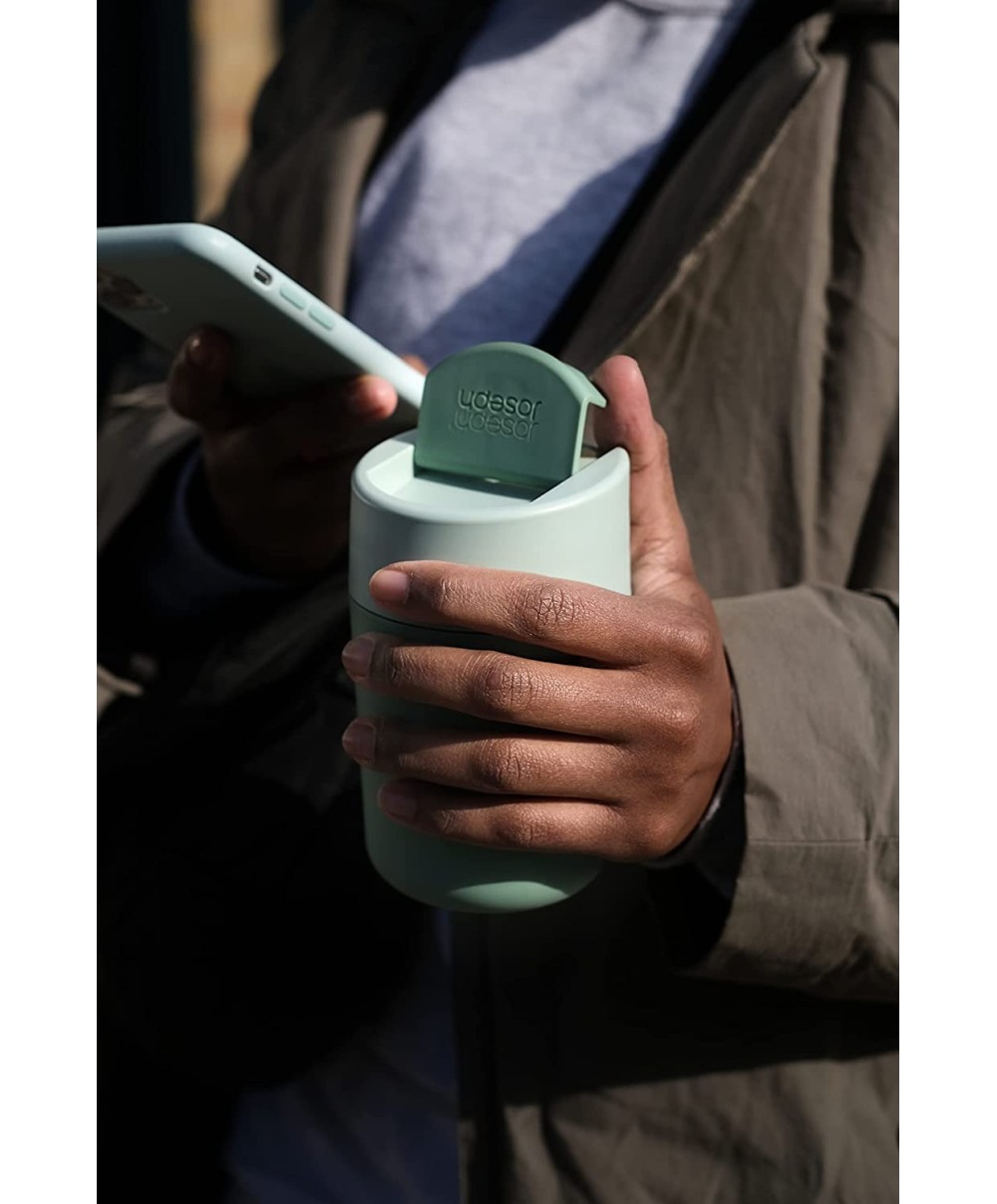 "Il design intelligente di questa tazzina da caffè presenta un tappo flip-top a prova di perdite che, una volta chiuso, copre completamente l'area che le tue labbra toccano quando bevi. Potrai perciò goderti la tua bevanda preferita senza compromettere l'igiene e senza utilizzare bicchieri usa e getta.