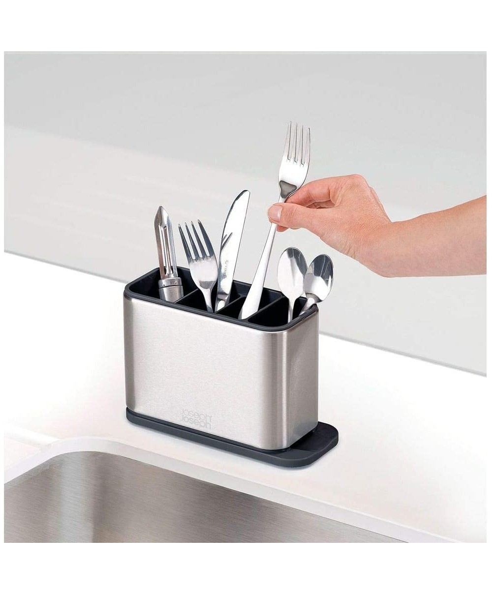 Con tre scomparti principali e una sezione poco profonda per gli oggetti più piccoli, puoi organizzare facilmente le tue posate mentre le lavi con lo scolaposate in acciaio inossidabile 85110 Joseph Joseph