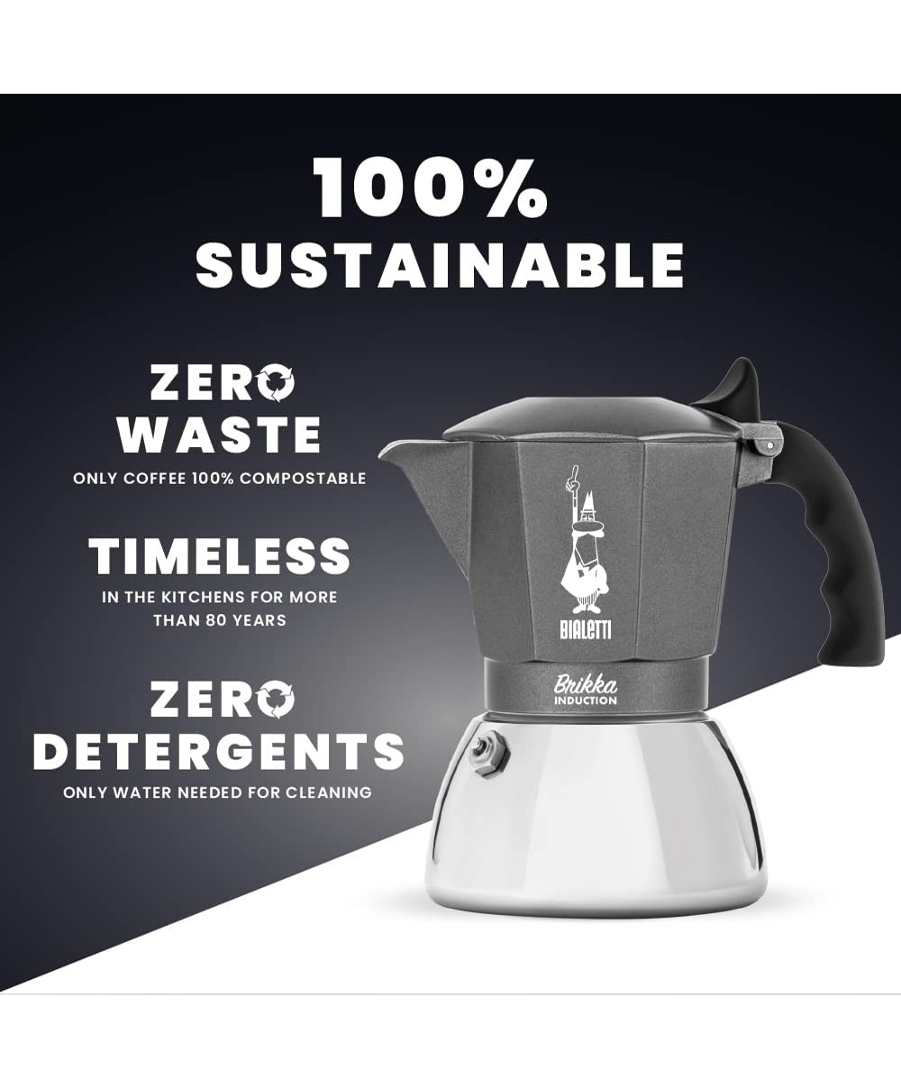 Brikka Induction di Bialetti porta sul tuo piano di cottura a induzione il piacere inconfondibile del vero caffè espresso.