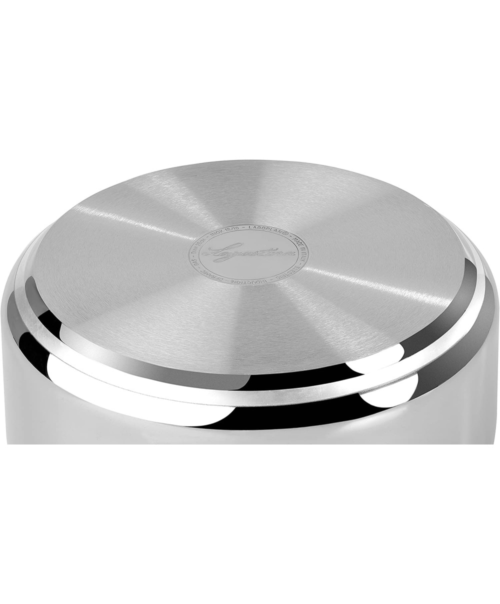 - Fondo Lagoplan® a tre strati ( acciaio - alluminio - acciaio ) ad alto spessore, adatto a tutte le fonti di calore inclusa l'induzione