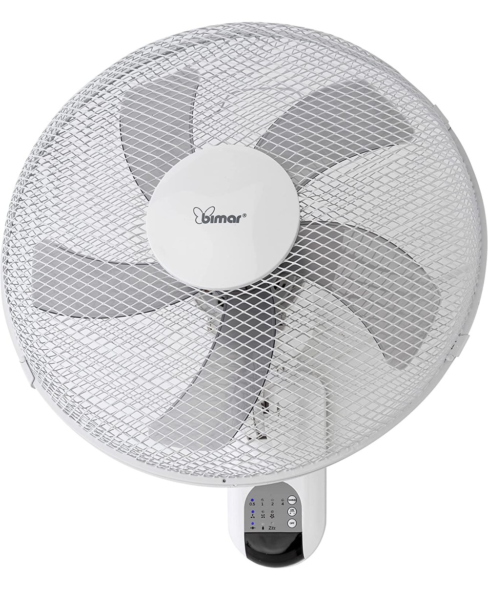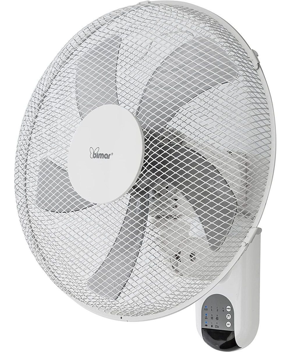 VM45 è un ventilatore a parete con telecomando della Bimar. Dotato di 3 velocità 5 pale e di timer regolabile fino a 7,5 ore.