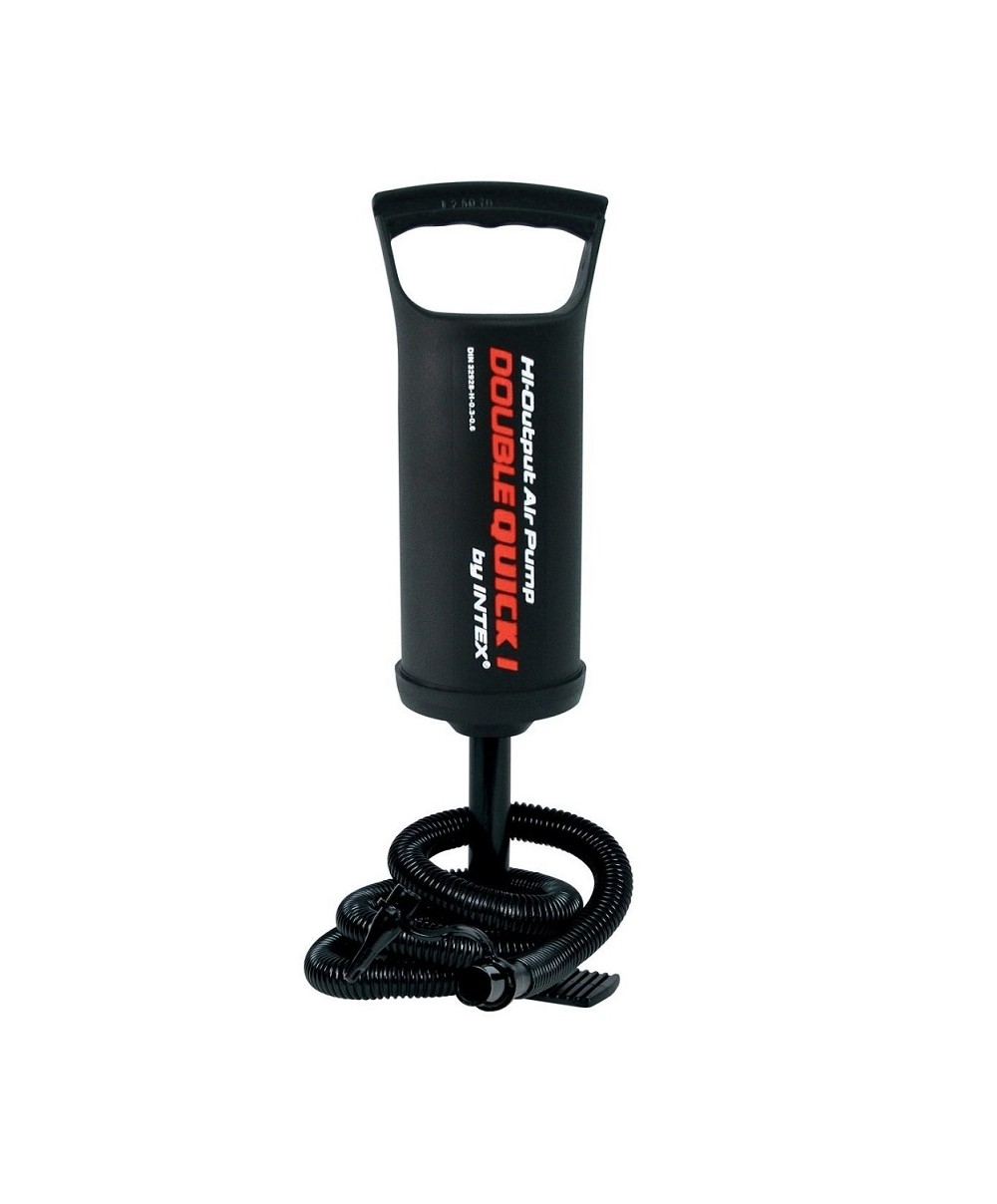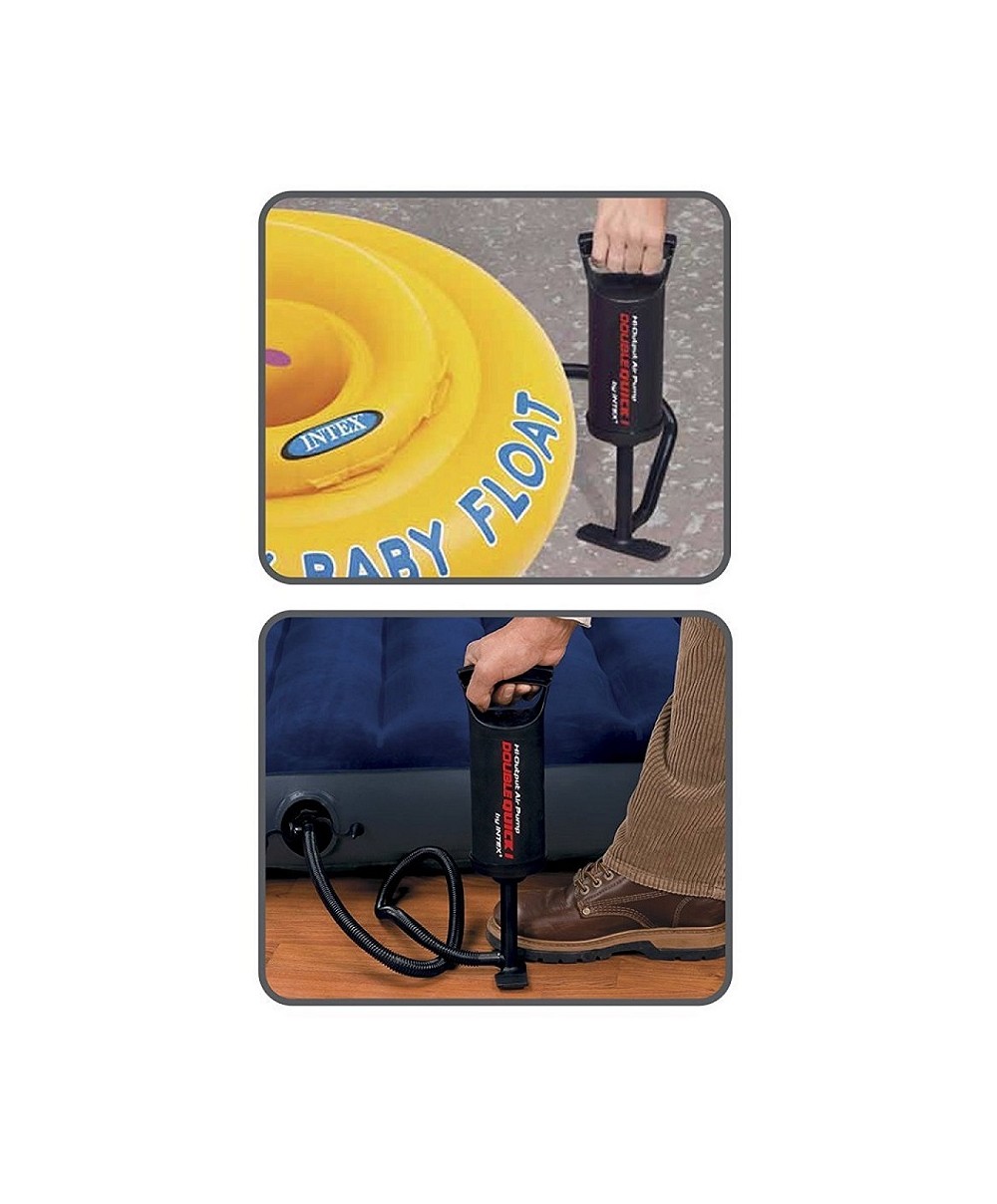 68612 è la pompa manuale piccola di Intex con tubo per gonfiaggio e sgonfiaggio e 3 adattatori. Altezza cm 29