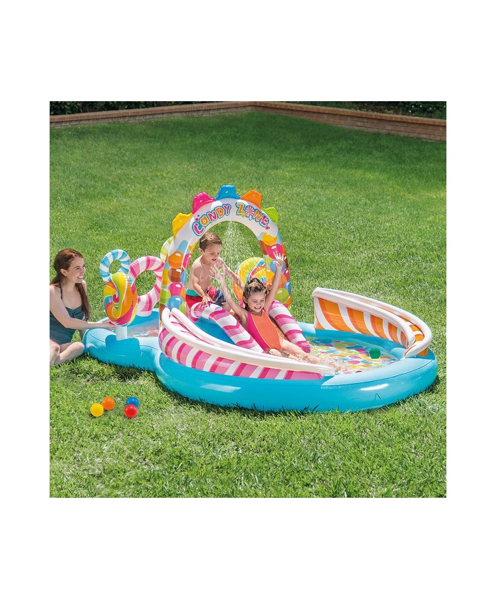 Candy 57149 è il play center caramelle di Intex adatto ai bambini dai 3 anni in su. È il parco giochi gonfiabile in stile fabbrica di cioccolato con giochi inclusi e piccola piscina. È realizzato in vinile di alta qualità per garantire un gioco divertente e sicuro.
