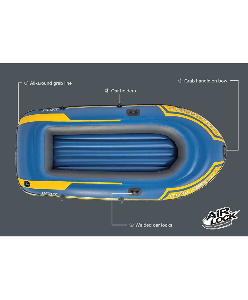 68367 è il canotto Challenger 2 di Intex perfetto per navigare su fiume lago e mare. È realizzato Portata Massima consigliata 200 Kg per assicurare sicurezza e funzionalità ed è coperto da certificazione NMM, SGS e TUV. È dotato di 3 camere d'aria indipendenti che ne assicurano funzionalità, resistenza e affidabilità.