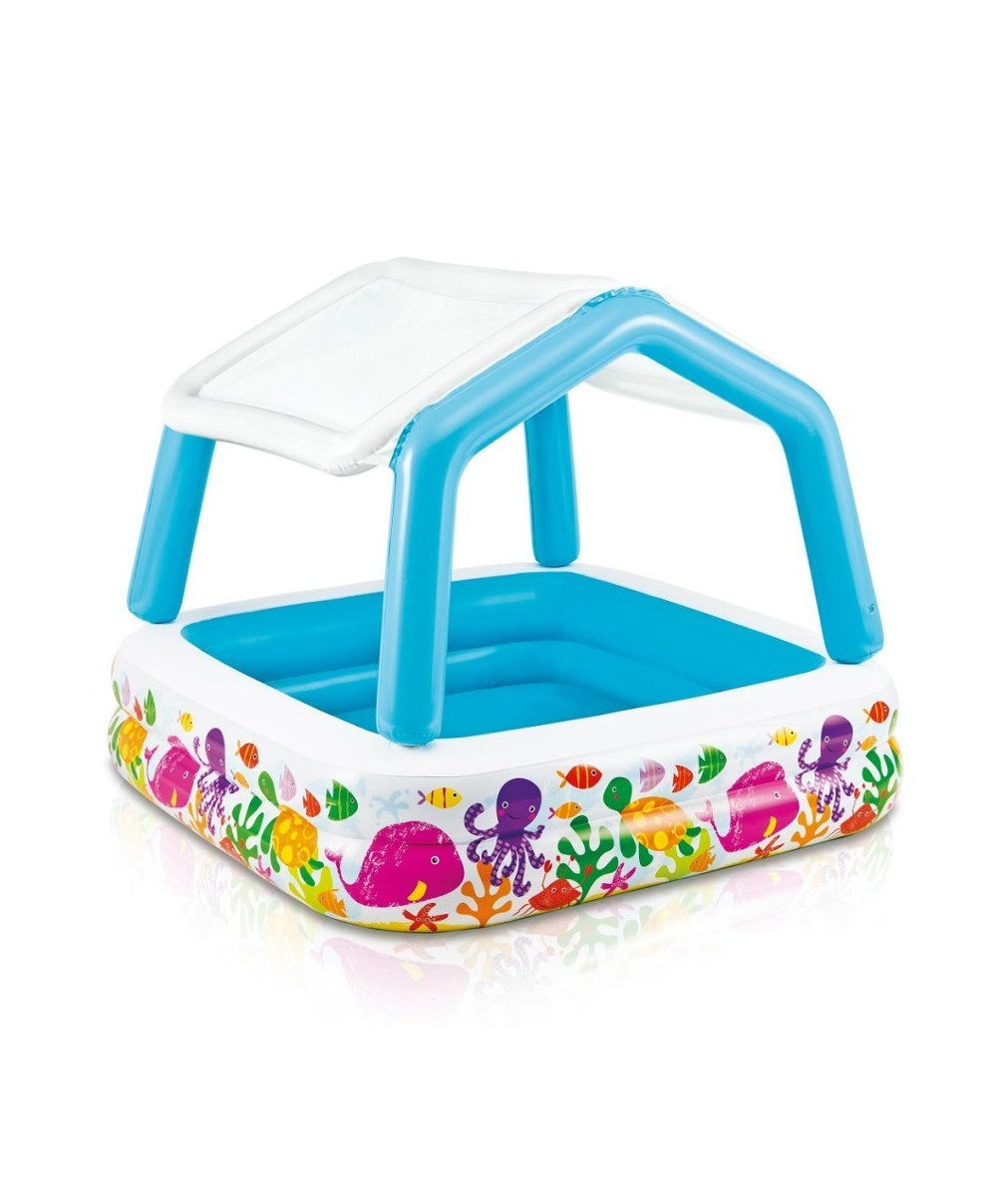 La piscina Sun Shade è colorata divertente e poco ingombrante. È realizzata in vinile da 0.25 mm e misura 157 x 157 x 122 cm.