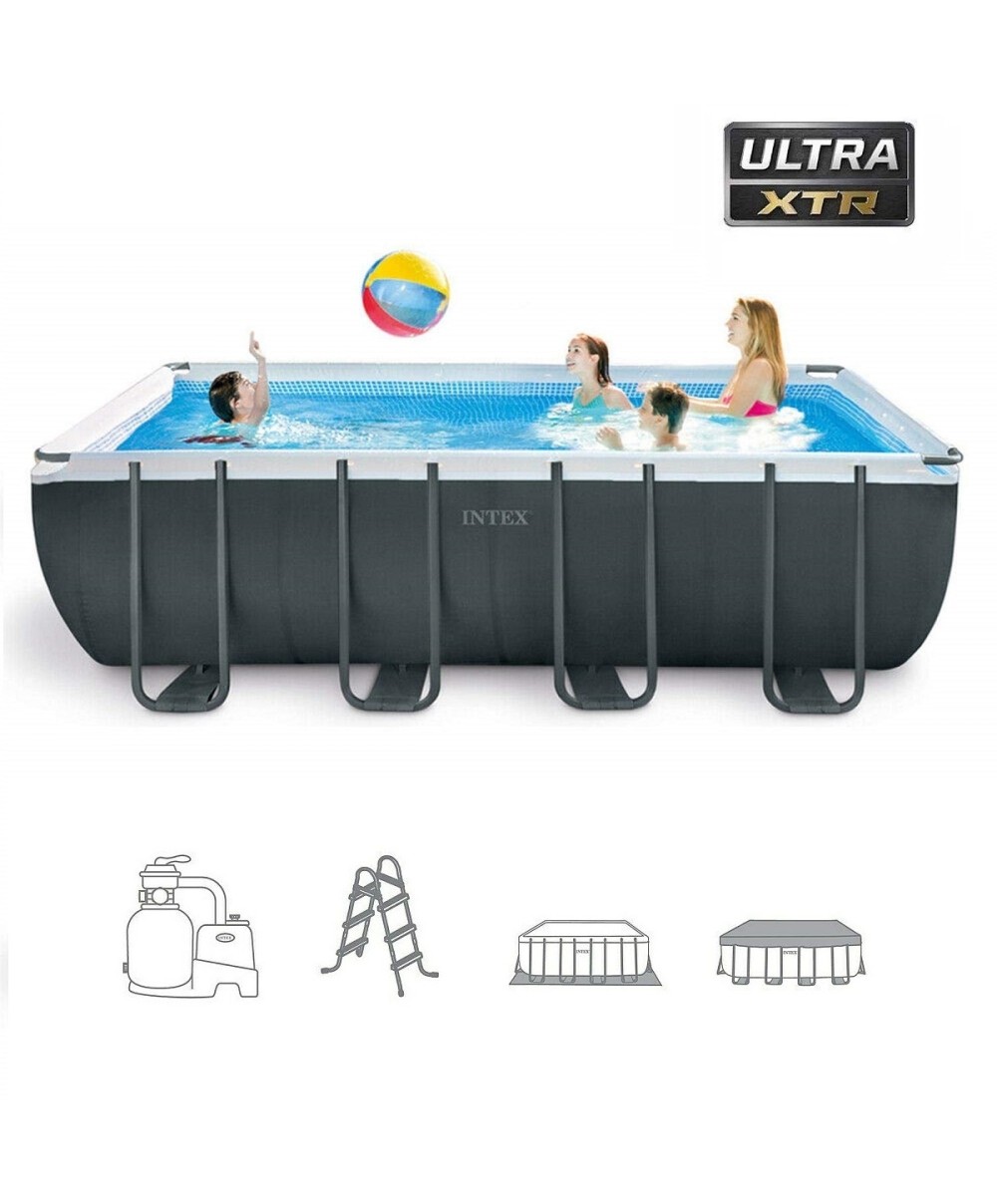 Piscina fuori terra Intex Ultra XTR® Frame 26356NP rettangolare 549x274x132 cm con struttura in acciaio zincato e liner triplo strato. Completa di pompa a sabbia, scaletta, telo base e telo di copertura.