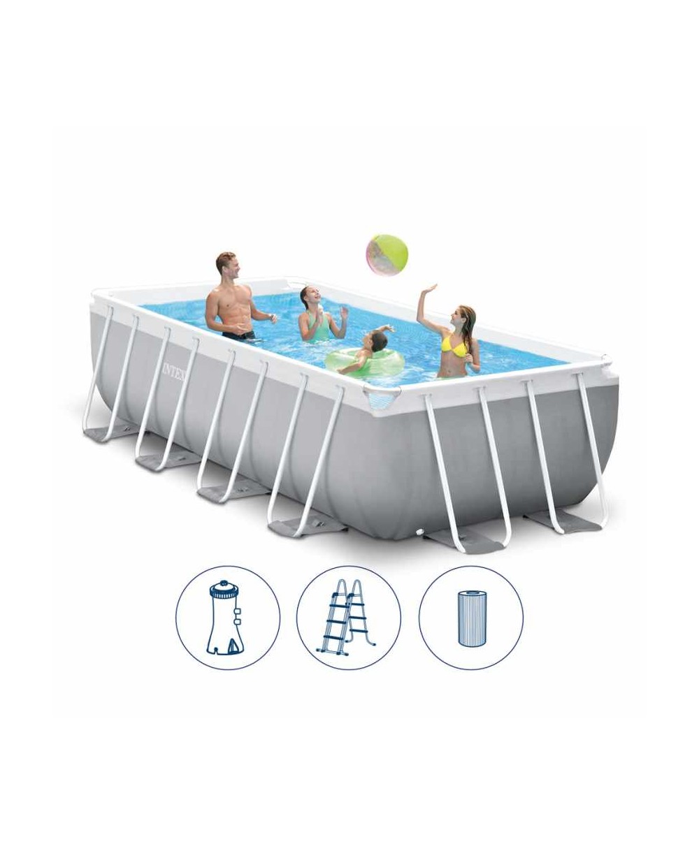 Intex ha creato la nuova linea Prisma di piscina fuori terra. 26788 è la piscina rettangolare facile da assemblare ed ha una struttura portante in tubolare molto solida. È inclusa sia la pompa filtro da 2.006L che la scaletta. Dimensione 4 x 2 x 1 m