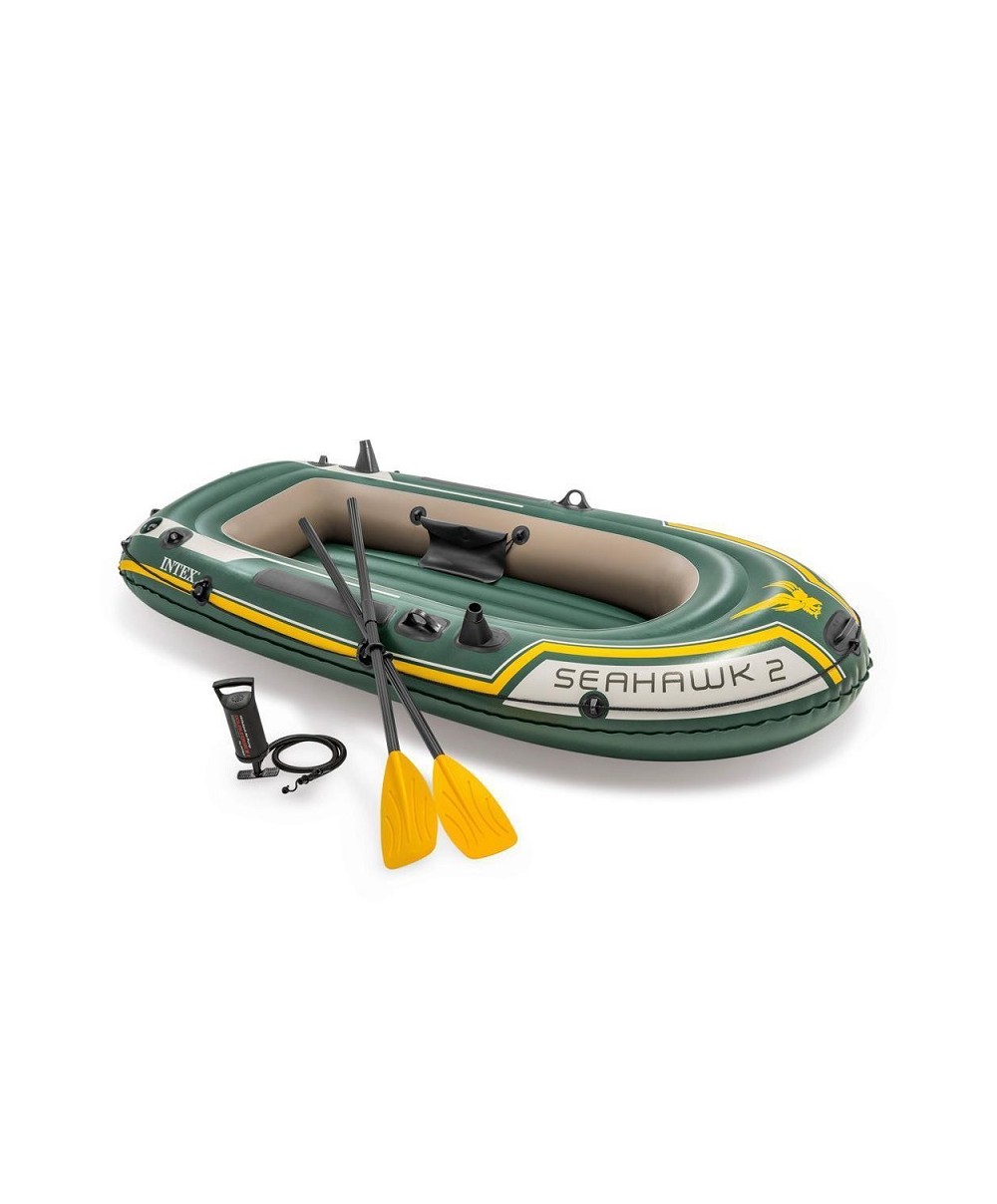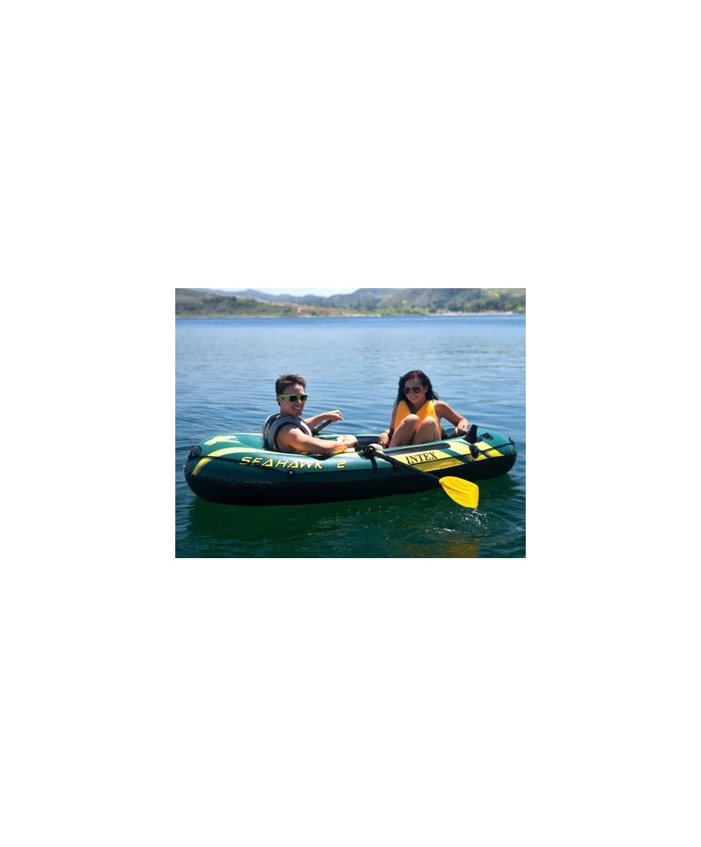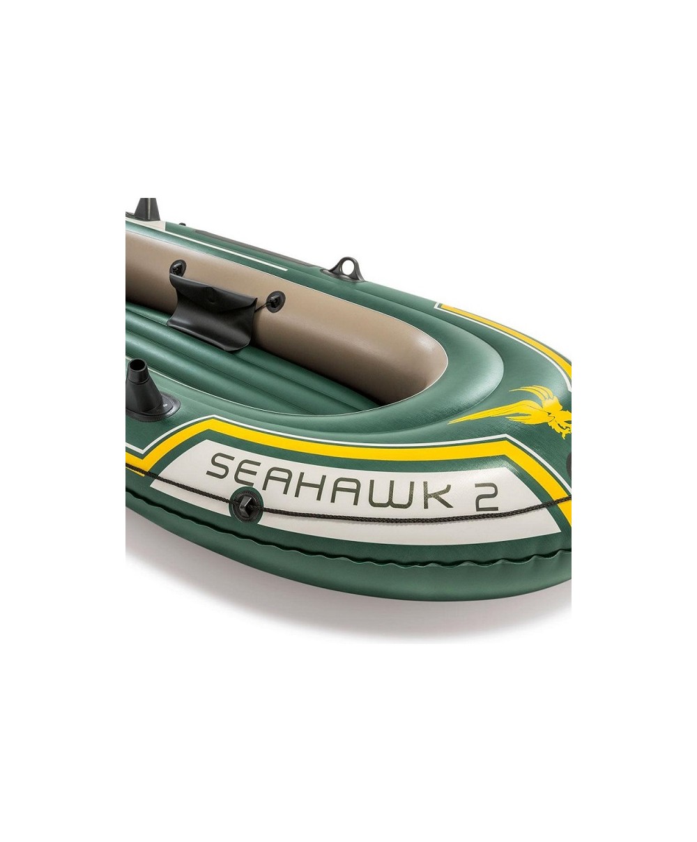 Seahawk è il canotto di Intex con inclusi la pompa manuale e i remi francesi. Questo canotto ha una portata massima di 200 kg, è realizzato in vinile robusto e per una maggiore galleggiabilità è dotato, all'interno, anche di una camera d'aria ausiliaria. NUOVA GRAFICA 2018