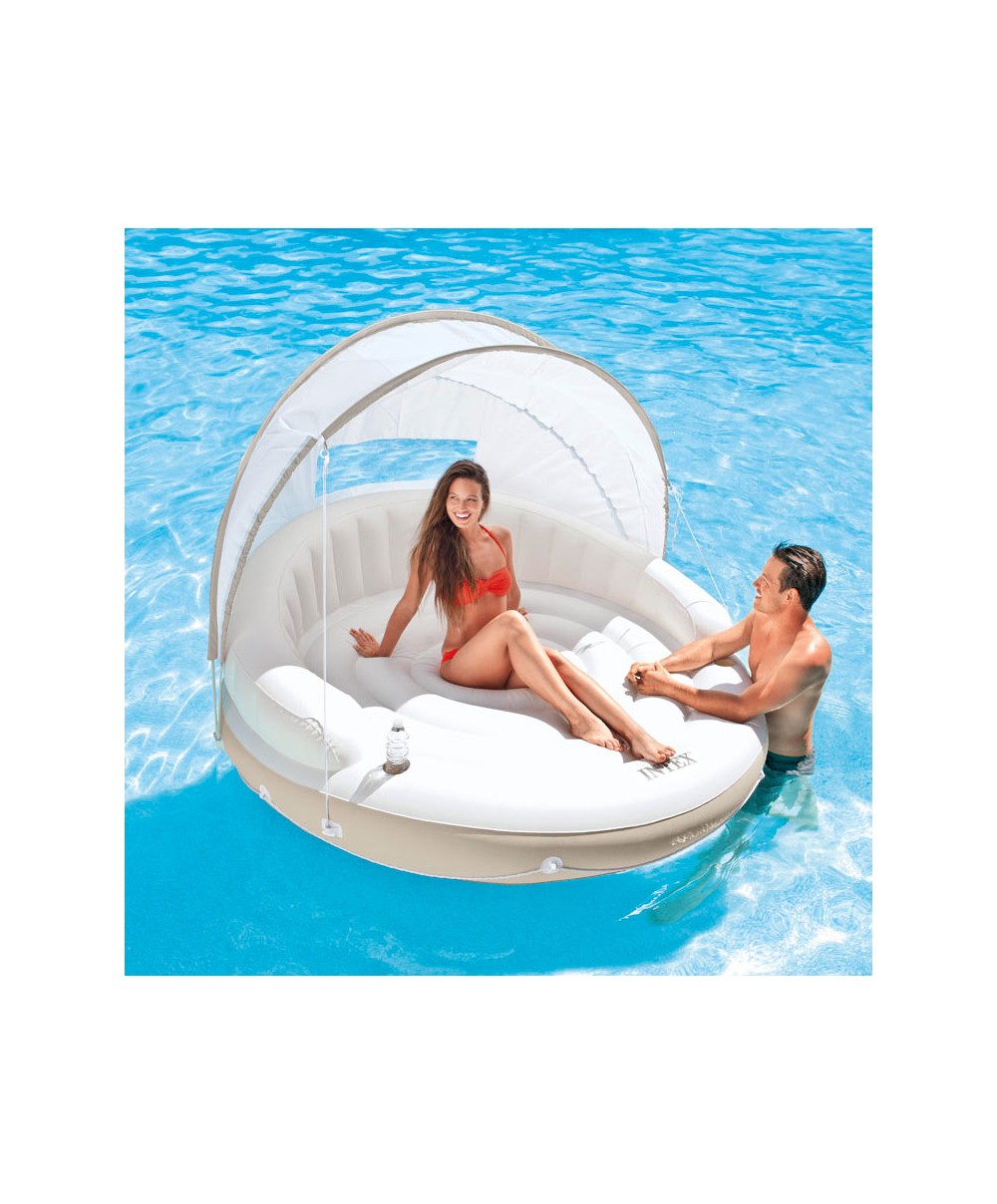 Con l'isola galleggiante di Intex dotata di schienale e parasole inclinabile è possibile rilassarsi al mare o in piscina. Il tendalino parasole può essere utilizzato durante le ore più calde ed essere rimosso quando il sole è meno caldo.