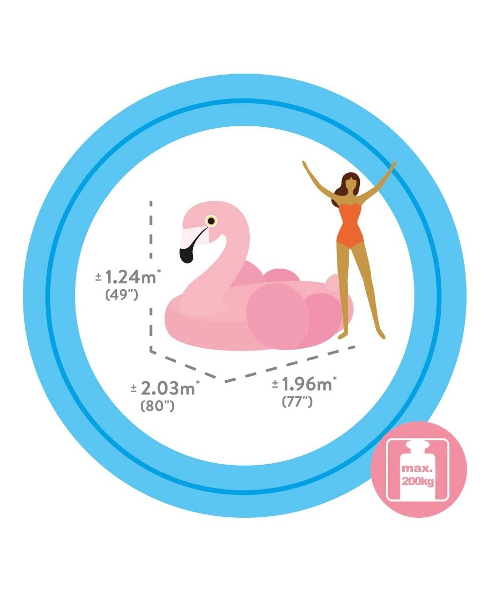 57288 di Intex è l'isola galleggiante Mega Fenicottero. È un simpatico materassino cavalcabile a forma di fenicottero rosa per giocare e per rilassarsi. Dimensione 203 x 196 x 124 cm