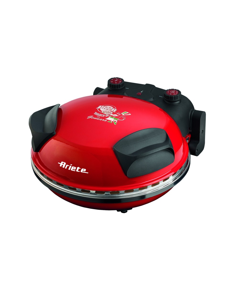 "Da Gennaro è il nuovo forno elettrico che prepara in soli 5 minuti ottime pizze! Il nuovo forno pizza di Ariete grazie alla pietra refrattaria e alla potenza di 1200 Watt raggiunge in pochi minuti la temperatura ottimale per cuocere pizze e focacce come in un vero forno a legna. Veloce e compatto, è ideale sia per pizze fresche che surgelate. Il Forno pizza Da Gennaro è dotato di un timer e di 5 livelli di temperatura che lo rendono ideale anche per cuocere torte salate, toast, panzerotti...come un tradizionale forno elettrico. Da oggi a casa tua, la vera pizza come a Napoli!