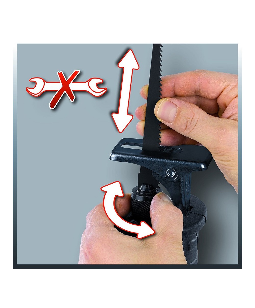 4326141 TC-AP è la sega agattuccio di Einhell. È un attrezzo versatile e dalle dimensioni compatte, che dispone di numerosi punti di forza: opzioni di tagli, portabilità e maneggevolezza. Dispone di un motore da ben 650 watt e offre un intervallo di oscillazioni regolabile tra le 500 e le 3000 al minuto. L’altezza di oscillazione è di 200 mm, mentre la profondità di taglio nel legno di 15 cm e di 10 cm nel metallo.