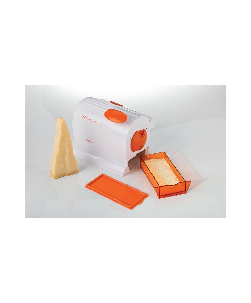 "Grattugia elettrica con rullo professionale in acciaio inox ideale per grattugiare oltre al formaggio anche pane, frutta secca. Dotata di un contenitore estraibile che può essere portato direttamente in tavola e di coperchio salvafreschezza per conservare il formaggio in frigorifero. Interamente smontabile e lavabile in lavastoviglie per una facile e rapida pulizia.
