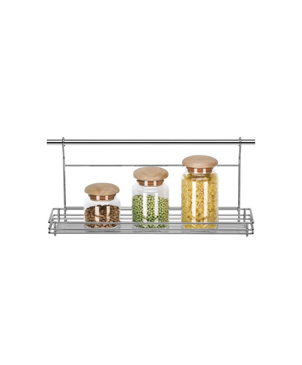 Mensola grande in acciaio con finiture cromo, è possibile appoggiarci sopra i barattoli di pasta o legumi.