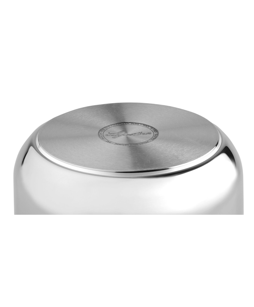 Il triplo fondo IRRADIAL® PLUS in acciaio-alluminio-acciaio consente una perfetta diffusione del calore evitando l'attaccamento dei cibi.