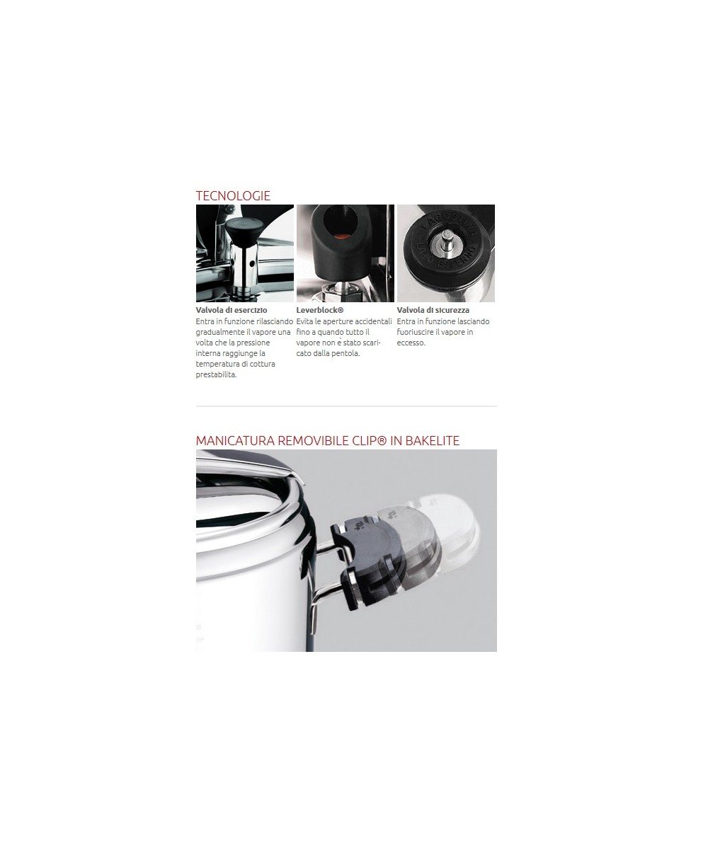 Il dispositivo di controllo LEVERBLOCK® impedisce l’apertura della pentola anche in presenza di un livello minimo di pressione.