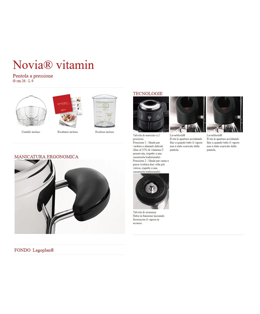 Novia Vitamin è la rivisitazione della classica pentola a pressione con una novità che ne facilita l’utilizzo.