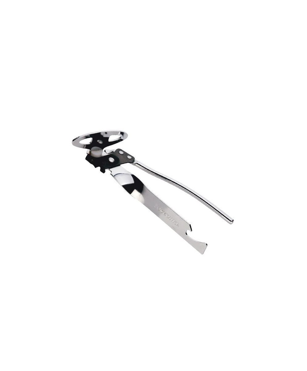 Il più tradizionale degli apriscatole è in metallo con un design essenziale. Ha due lame che agganciano e tagliano il bordo della lattina semplicemente girando la manovella. Utilissimo anche per stappare le bottiglie grazie al levacapsule incorporato in uno dei due manici.