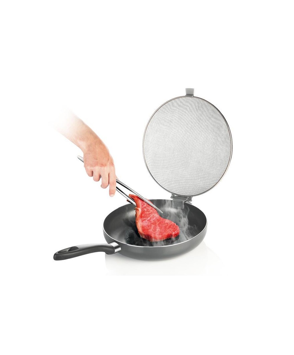 Paraspruzzi prodotto in acciaio inossidabile di alta qualità, nylon e silicone resistenti al calore (230 °C), ideale per riparare il piano cottura della cucina da fastidiosi schizzi d'olio durante la frittura. Provvisto di una pratica clip che si adatta facilmente a tutti i tipi di padelle con diametro compreso tra 18 e 28 cm. Dimensioni: ø 29 cm