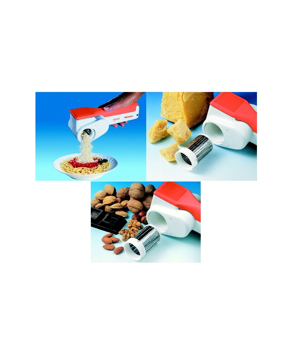 "Gratì 40 è la pratica grattugia elettrica ricaricabile di Ariete. Senza filo e senza pile, leggera e maneggevole, si aziona con un semplice pulsante. Oltre ai formaggi, sia a pasta dura che morbida, è adatta per grattugiare pane secco, cioccolato, frutta secca, ecc. Oltre 100 piatti di autonomia. Completamente smontabile per una pulizia facile e completa. E’ dotata di tappo di chiusura laterale che garantisce la massima igiene.