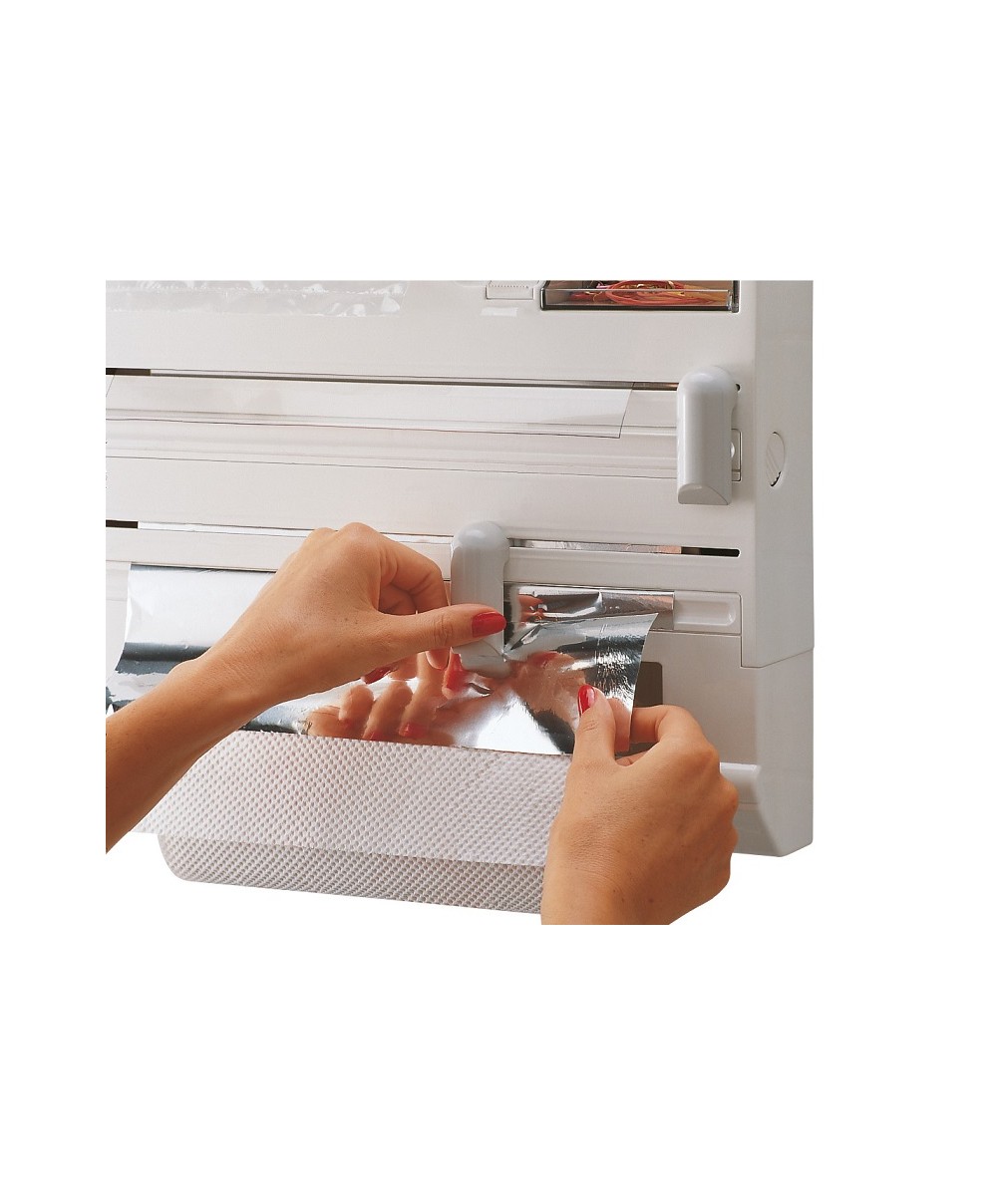 Il portarotoli da parete Leifheit 25723 è perfetto per organizzare lo spazio della tua cucina. Un solo prodotto per disporre il rotolo di alluminio, la pellicola, i sacchetti per la surgelazione, il rotolo della carta assorbente, il rotolo di nastro adesivo e i piccoli oggetti da tenere a vista in cucina.