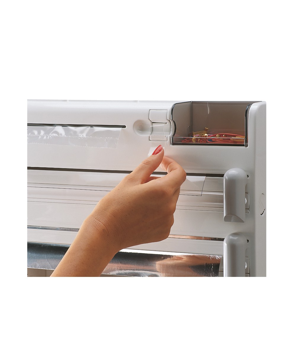 Dopo il taglio, le estremità dei rulli sporgono dal supporto abbastanza da permettere di essere afferrate ed estratte senza difficoltà all'impiego successivo. Le lame molto affilate sono celate dietro ai pratici taglierini per impedire eventuali lesioni.