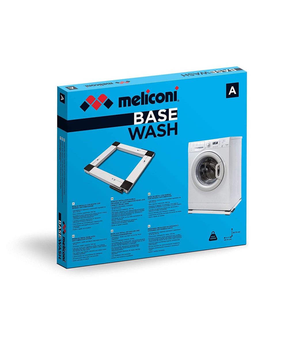 Base Wash di Meliconi è la base in metallo antivibrazione con ruote ideale per lavatrice o asciugatrice. Vi consente di spostare il vostro apparecchio senza sforzo e senza segnare il pavimento per fare le pulizie o accedere alla parte posteriore.