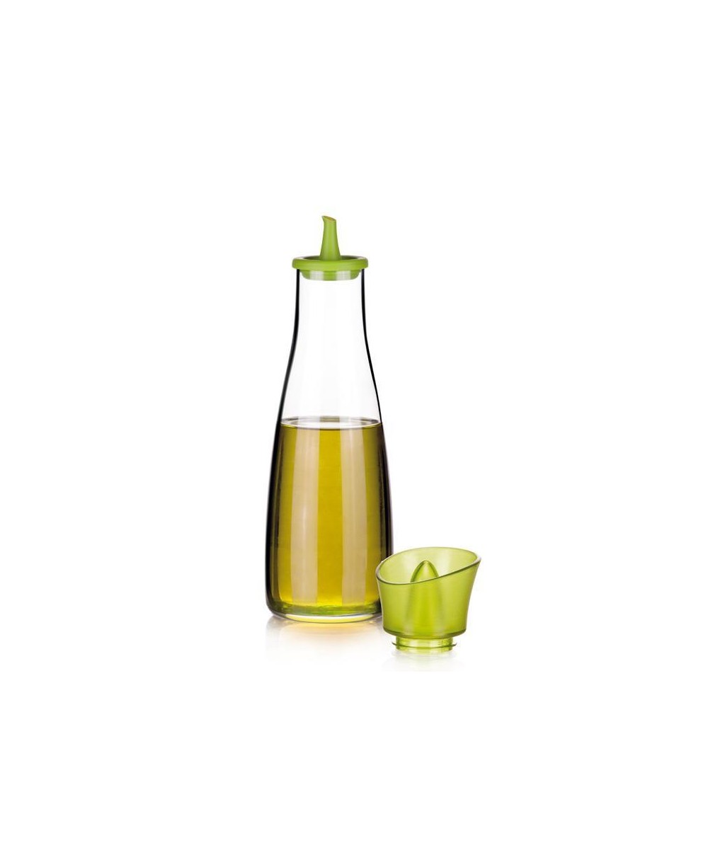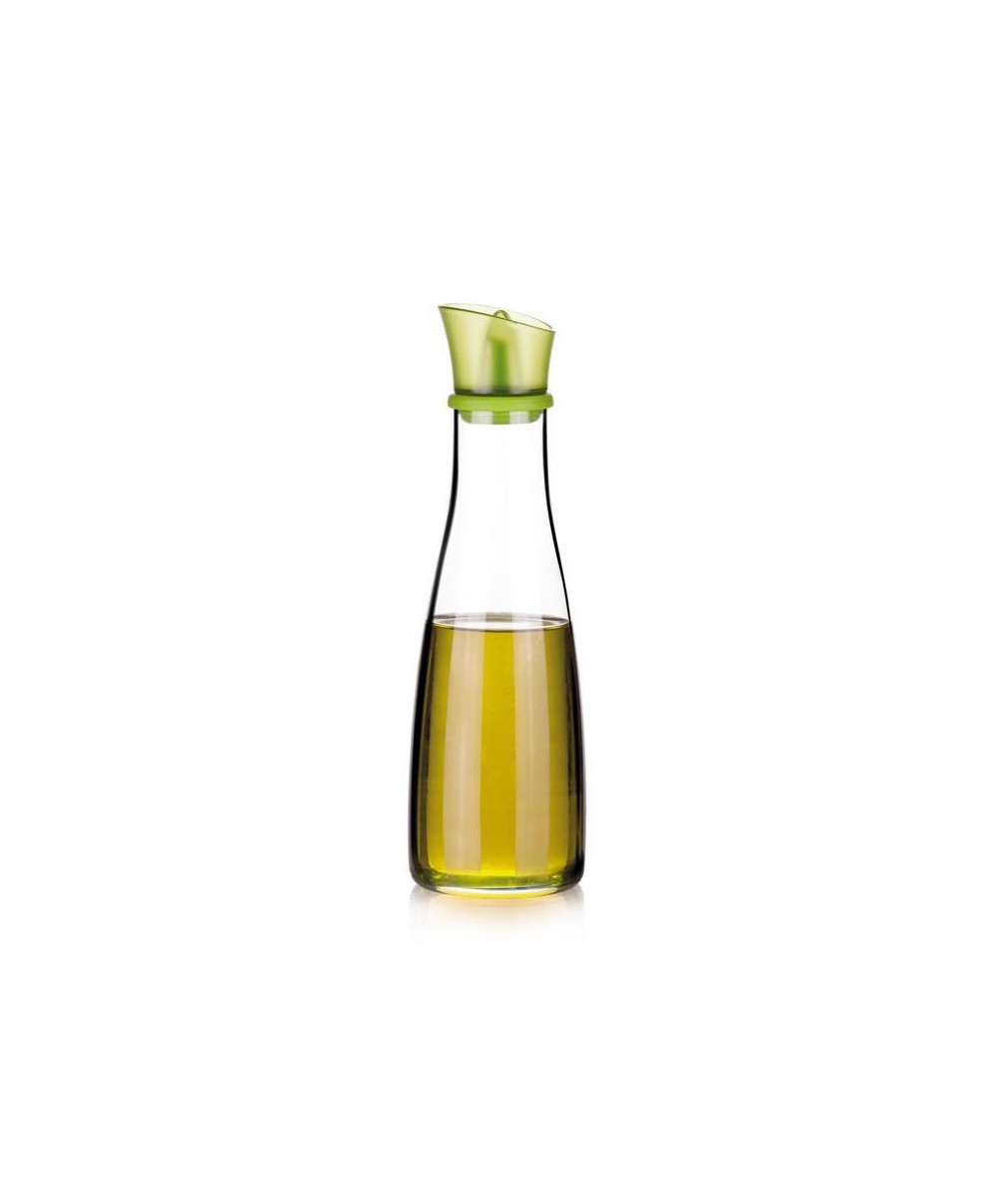 Ecco un'oliera perfetta per cucina o per la tavola informale: ha il recipiente in vetro borosilicato ed il beccuccio versatore in silicone di colore verde.