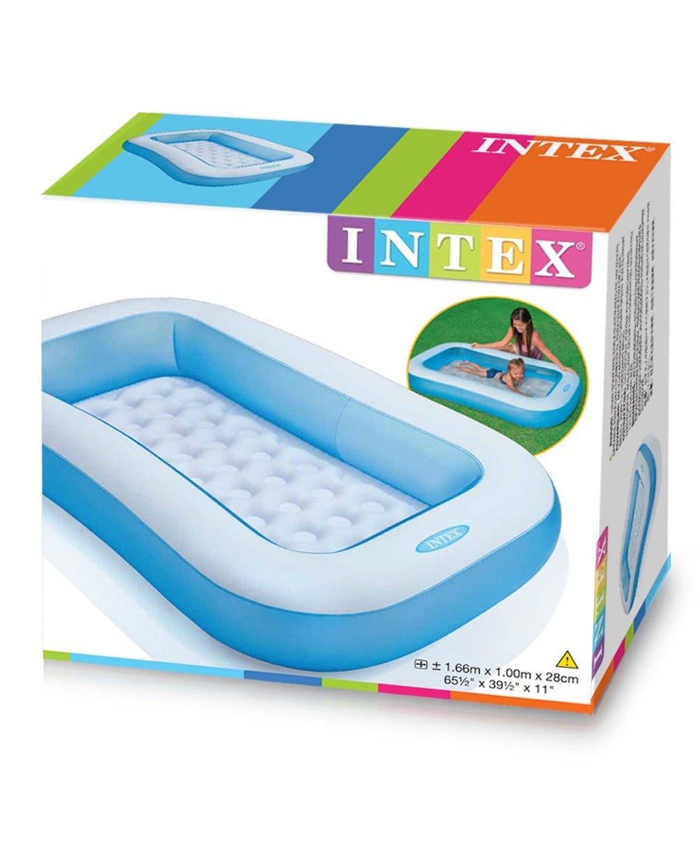 57403 di Intex è la piscina gonfiabile Baby. È rettangolare è può essere sistemata su balconi e terrazze. Dimensione: 166 x 100 x 28 cm.