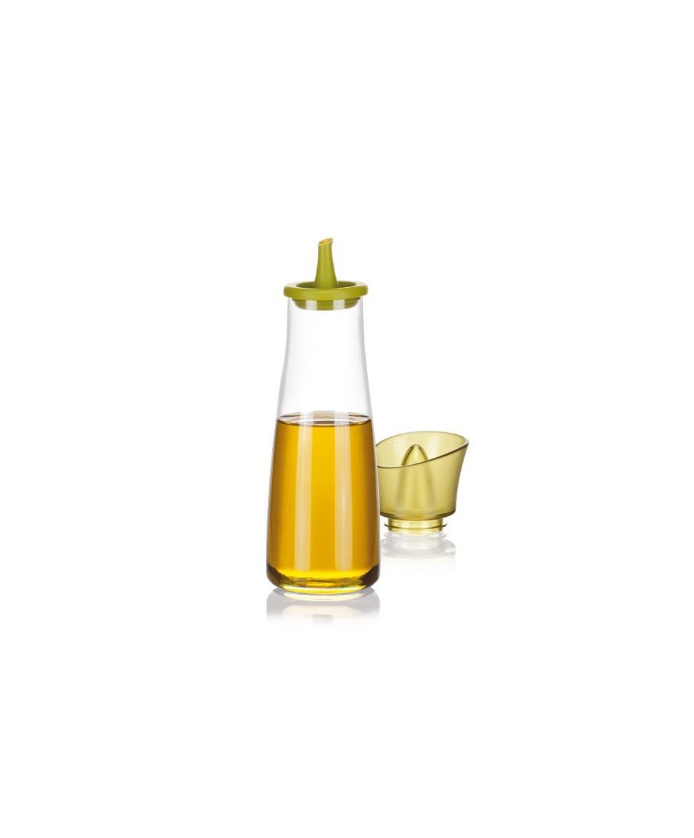 Ecco un’oliera perfetta per cucina o per la tavola informale: ha il recipiente in vetro borosilicato ed il beccuccio versatore in silicone di colore verde.