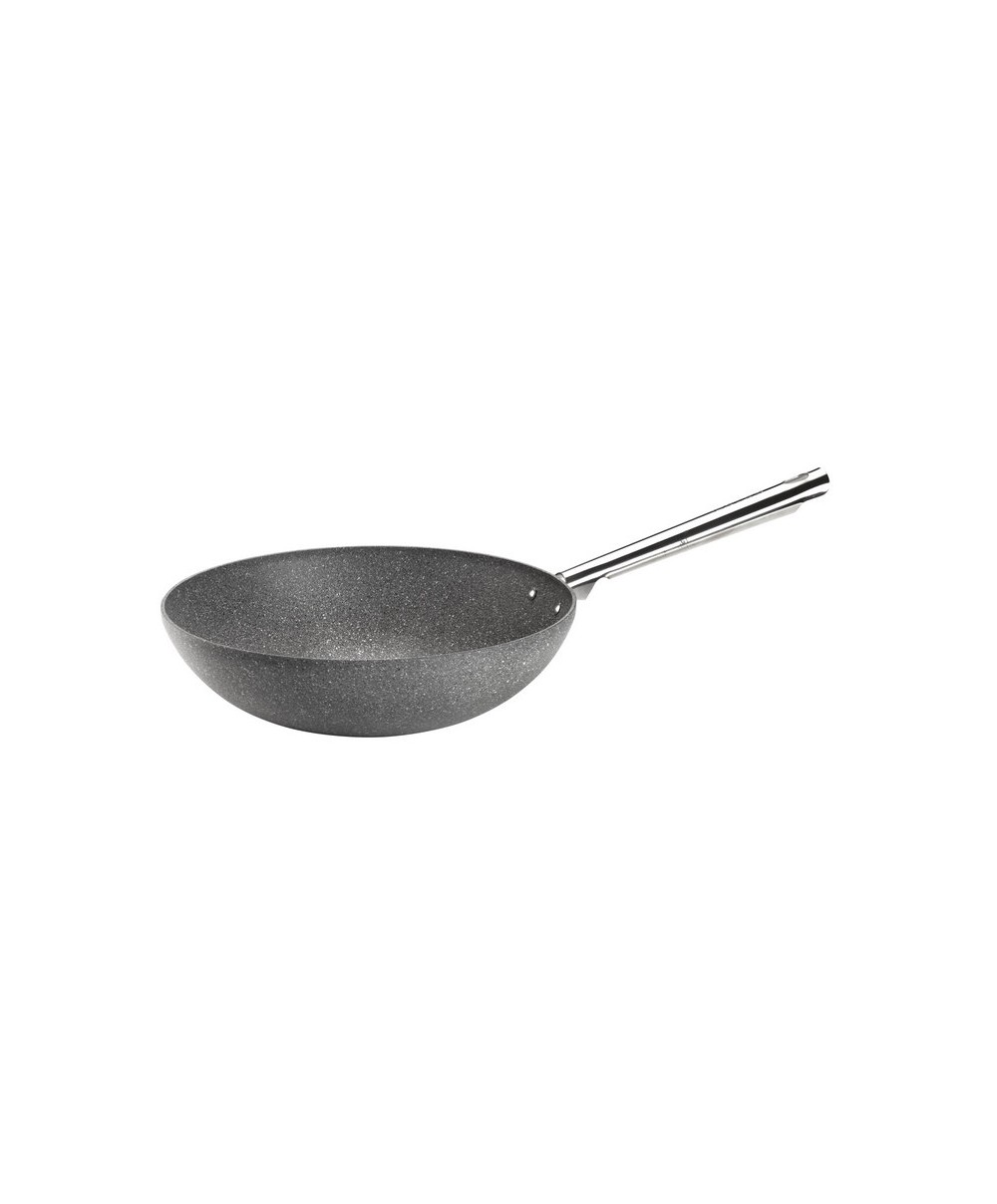 Il wok di Pintinox si caratterizza per un rivestimento antiaderente effetto pietra rinforzato con Titanio.