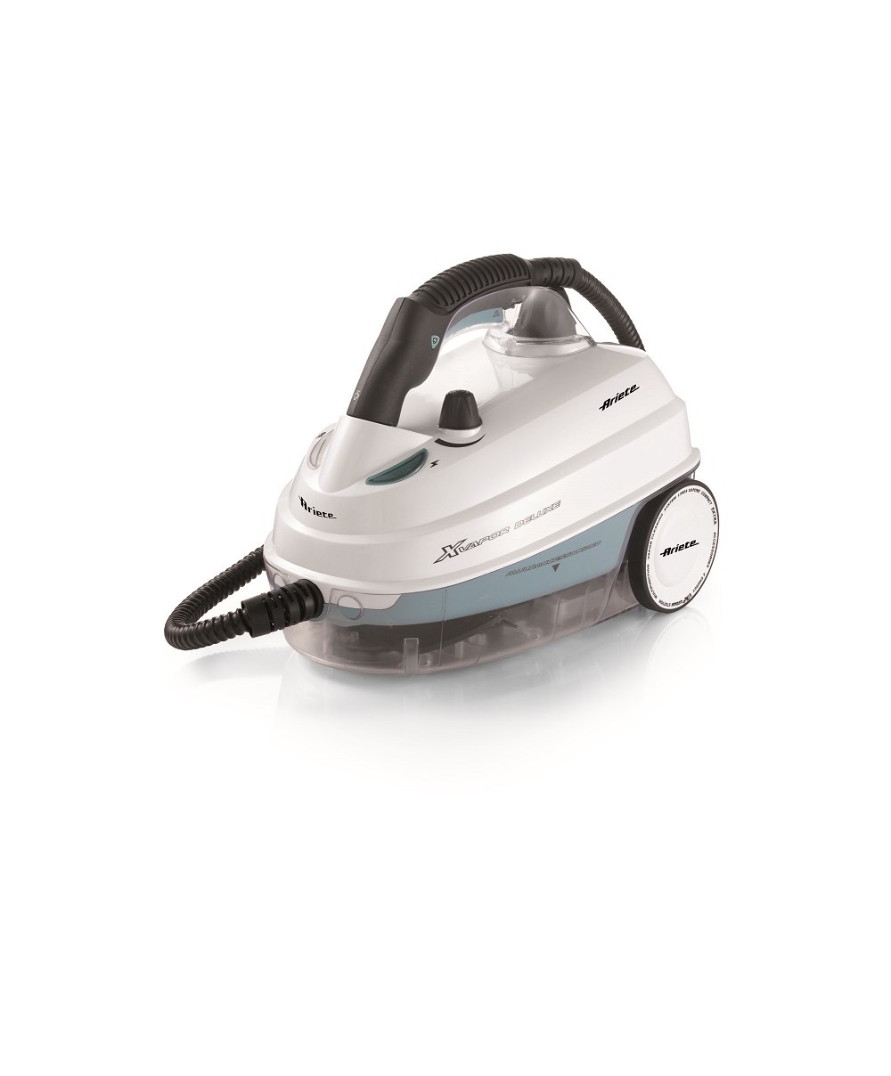 XVapor Deluxe è il nuovo pulitore a vapore a traino di Ariete che garantisce la massima igiene senza l'uso di detergenti. Sulla base presenta un comodo vano porta accessori. Potenza 1500W - 5 Bar