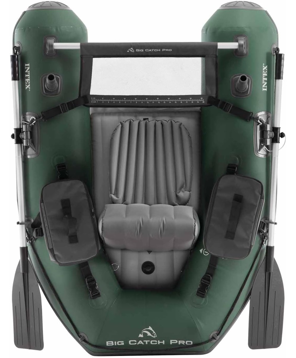 Realizzato con la tecnologia brevettata in PVC SuperTough a 3 strati con anima in poliestere, per un’elevata resistenza agli urti e alle abrasioni, mantenendo leggerezza e portabilità. Il pavimento gonfiabile, invece, presenta la struttura interna brevettata Fiber-Tech™ di INTEX, che fornisce un elevato supporto durante l’uso. Big Catch Pro ha anche perimetro e fondo rinforzati in PVC, per essere protetto ulteriormente da eventuali urti.