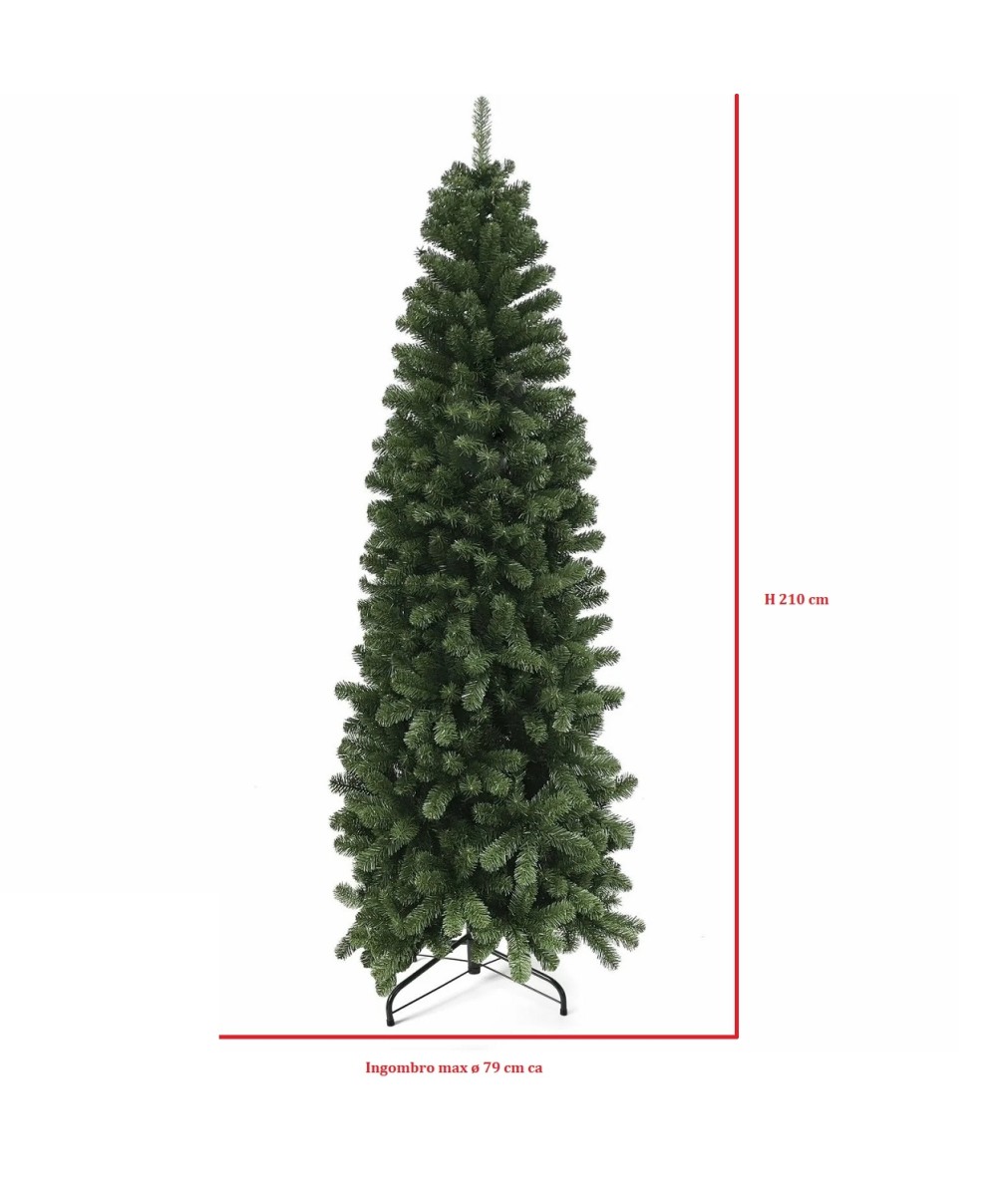 Albero di Natale artificiale slim cm 210 Ben Nevis folto salvaspazio