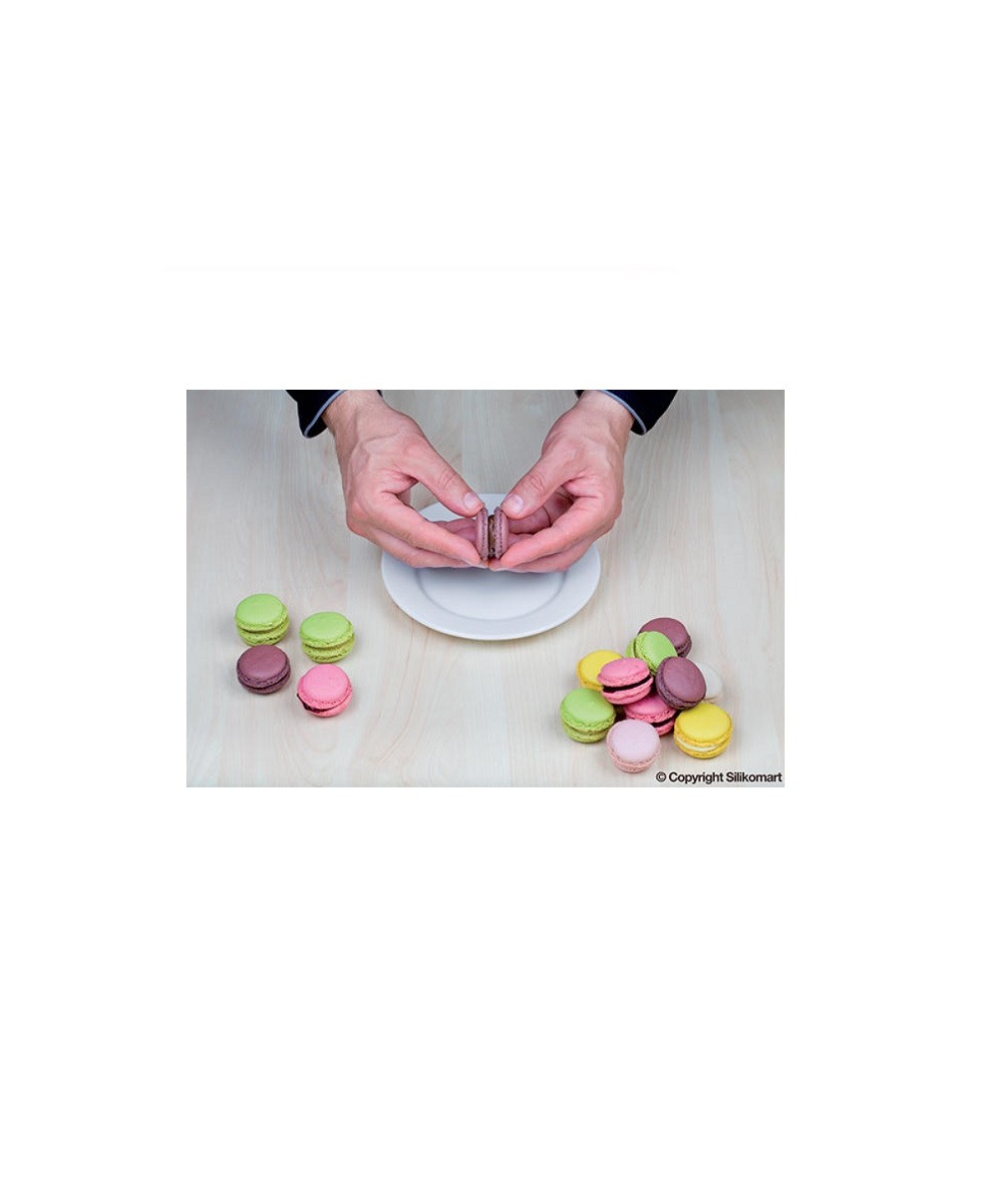 Per realizzare macaron precisi un valido aiuto viene da tappetino Macarons Mat di Silikomart. È realizzato in silicone è permette di realizzare 24 macarons.