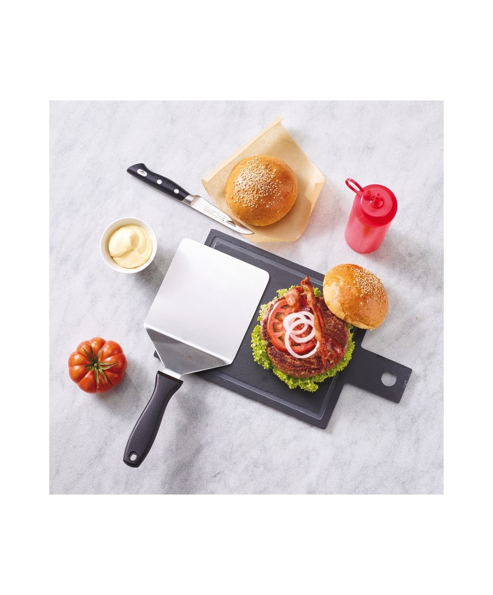 La spatola in acciaio inox 18512-15 di Paderno è ideale per la cottura degli Hamburger. Ha la superficie più ampia rispetto alle altre spatole e l'mpugnatura ergonomica realizzata in polipropilene