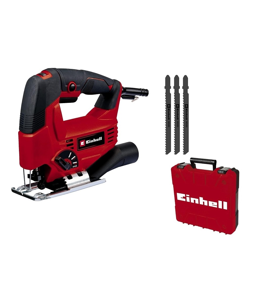 Il seghetto alternativo Einhell TC-JS 80/1 Kit è già fornito con accessori, in modo da poter iniziare a lavorare subito dopo il disimballaggio. Oltre a una pratica valigetta , la dotazione comprende anche tre lame (attacco a T) per legno e plastica. In questo modo il prossimo progetto fai-da-te non si farà certo attendere!