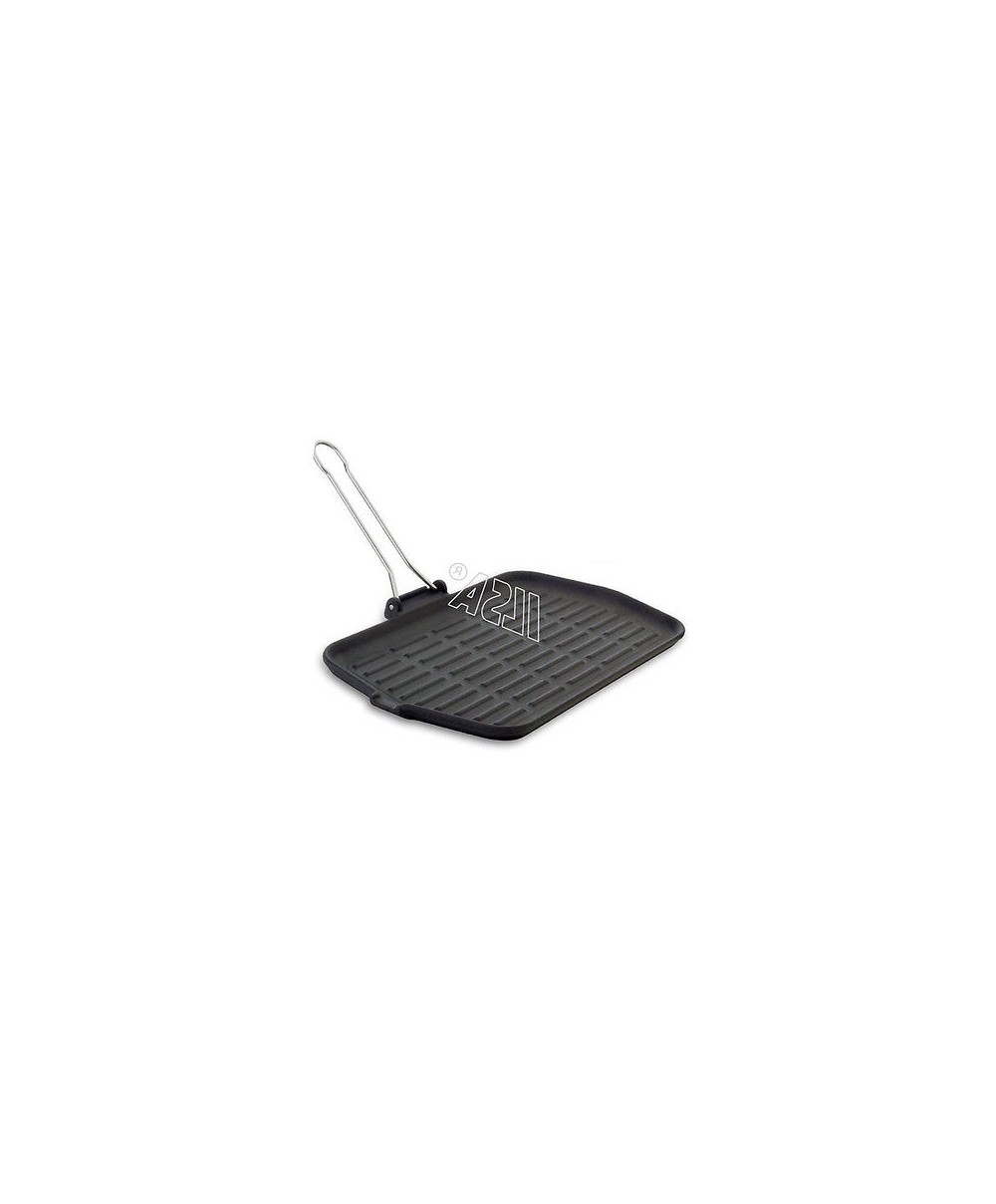 Bistecchiera in ghisa, manico antiscivolo pieghevole, fondo sagomato per una cottura ottimale senza grassi aggiunti. Adatta a piano a induzione.