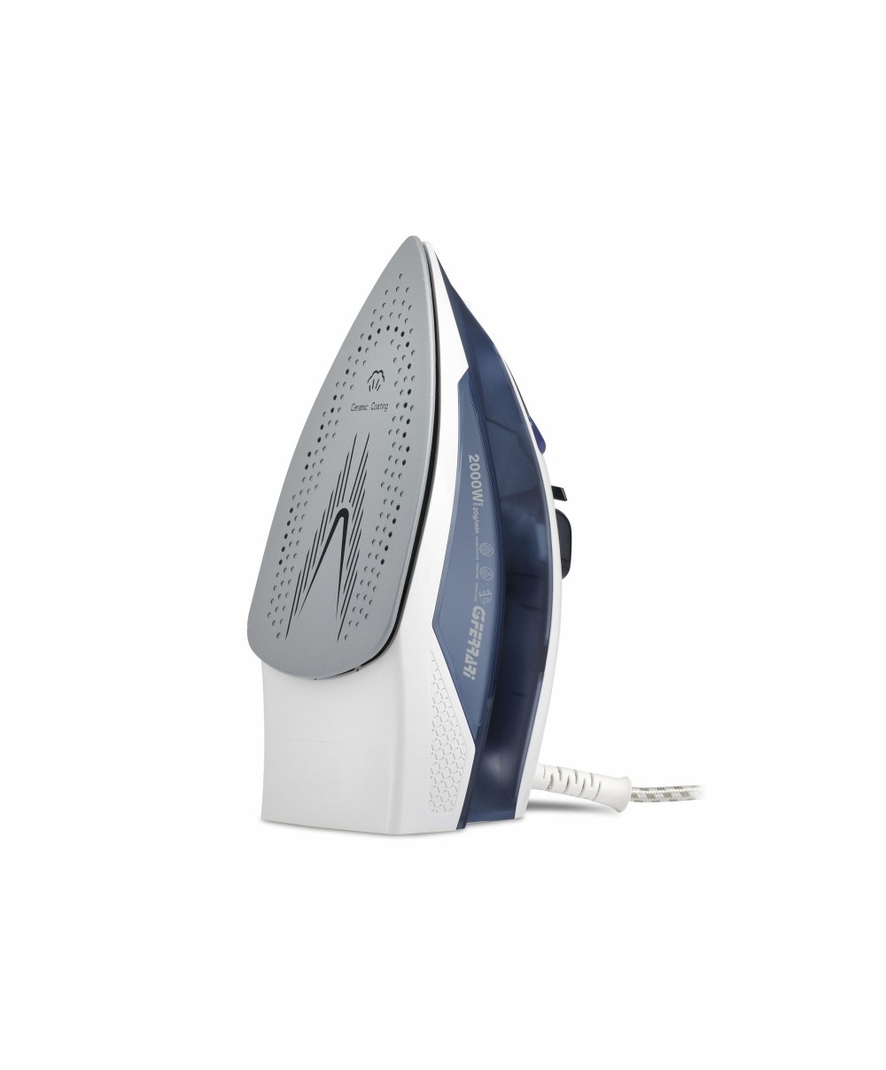 G40014 è il ferro da stiro a vapore dotato di piastra in ceramica per una migliore scorrevolezza su tutti i tipi di tessuto. Volume di vapore di 10-20 g/min e colpo vapore di 0.3-0.8 g. Potenza: 2000 W.