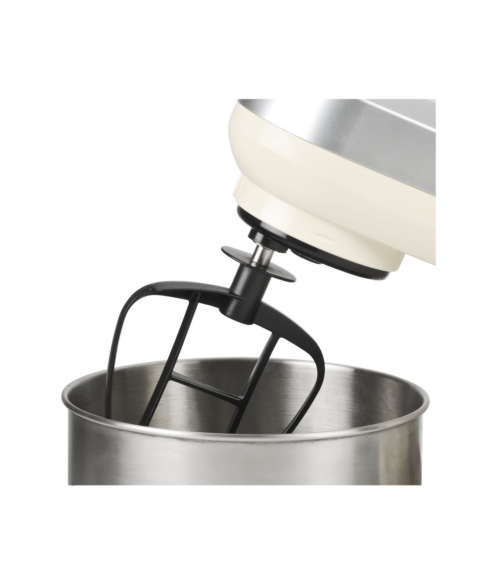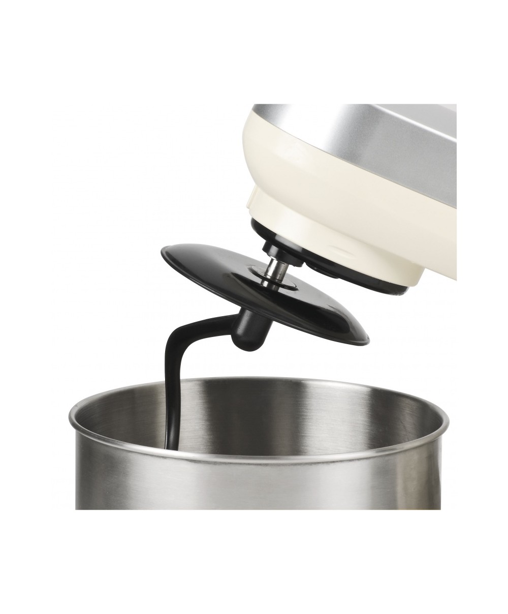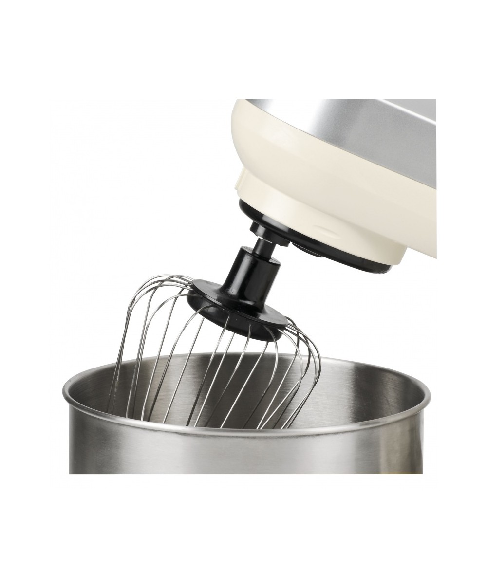 Accessori: uncino impastatore e mescolatore in metallo pressofuso rivestito, frusta sbattitrice in acciaio inox, coperchio trasparente