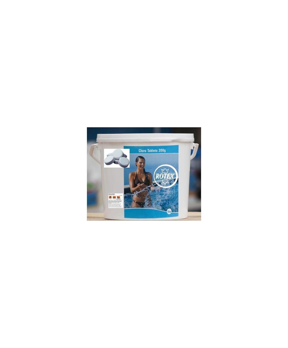 Nella confezione da 5 Kg di Tricloro ci sono 25 pastiglioni da 200 gr. È a lenta solubilità pertanto deve essere usato negli skimmers o dosatori a lambimento per clorare l'acuq della piscina