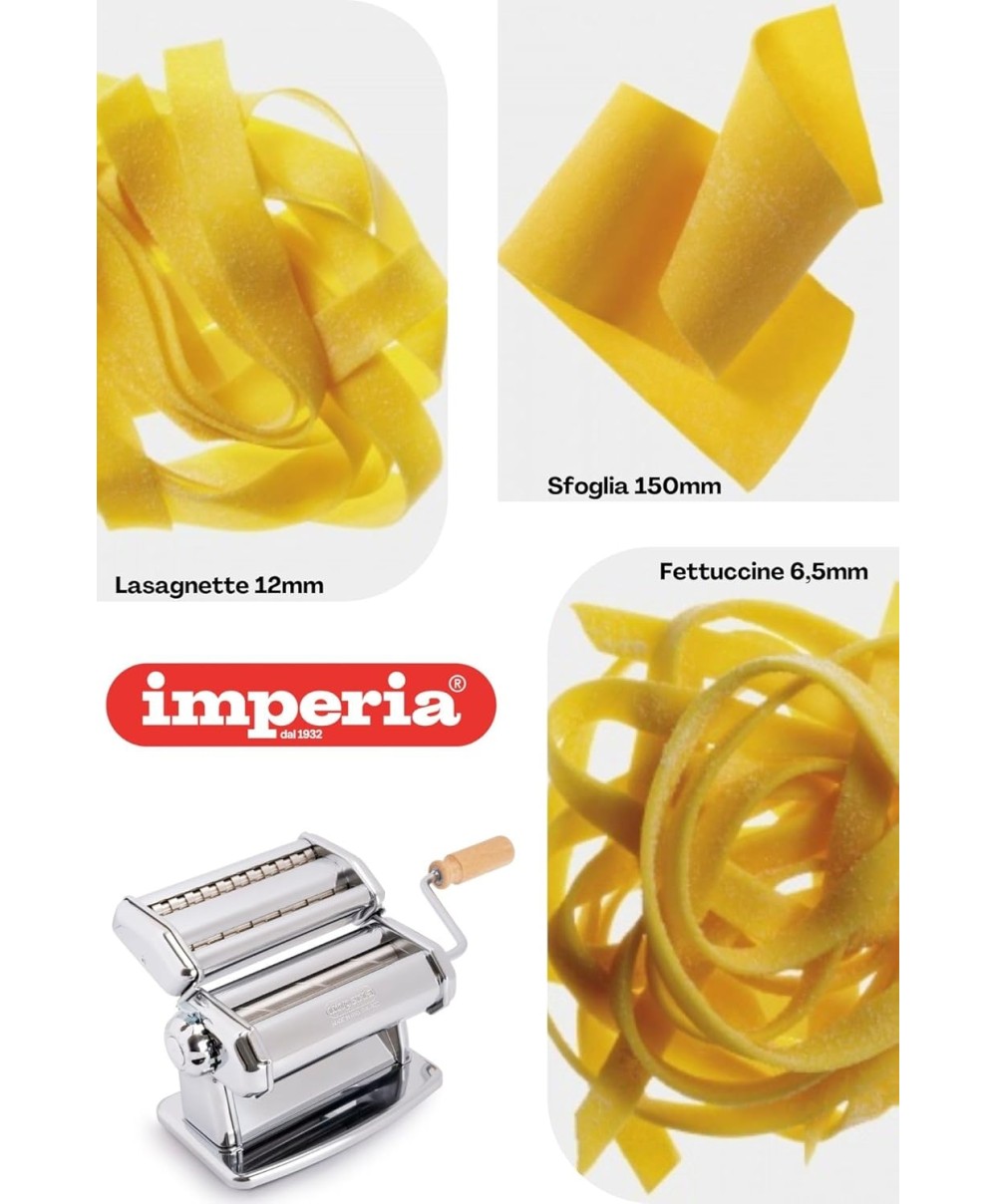 Con Imperia iPasta e il l’accessorio “Duplex” incluso, realizzerete la sfoglia in sei diversi spessori e due formati di pasta: lasagnette e fettuccine.