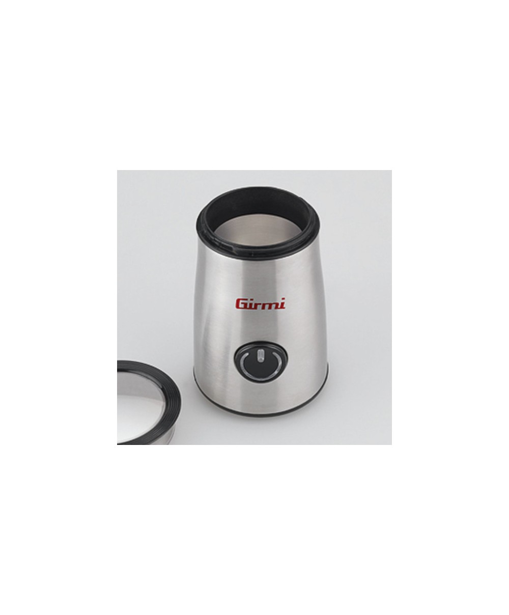 "Con il macinacaffè Girmi MC01 potrai godere di una deliziosa tazza di caffè, espresso o moka, con chicchi macinati freschi al momento, per un aroma forte e deciso. Grazie al funzionamento automatico, è sufficiente premere il tasto di accensione e avrai le mani libere per fare altro in cucina. Molto comodo da pulire, dal momento che il contenitore di macinazione è removibile, il nostro macinacaffè è dotato di dispositivo di sicurezza che ne inibisce l’uso quando il contenitore non è in posizione.