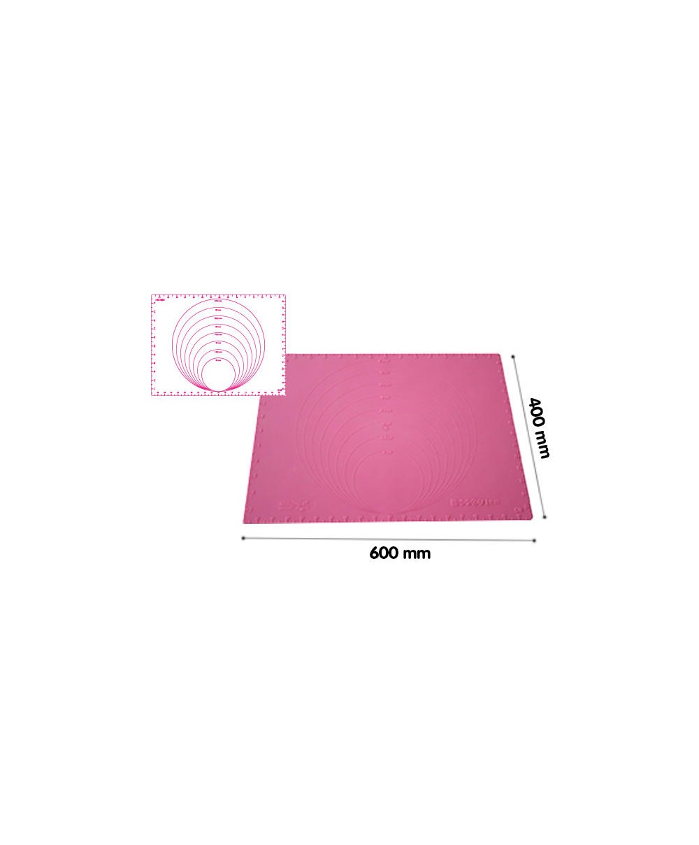 - Tappeto in silicone con cerchi in rilievo e misurazioni laterali espresse in centimentri e in inches, ideale per stendere e tagliare con precisione la pasta di zucchero e ogni tipo di pasta modellabile.