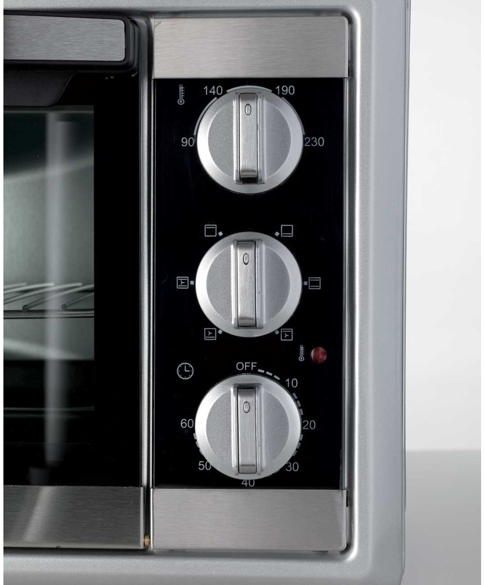 Fornetto elettrico con capacità 25 litri che assicura prestazioni eccezionali, garantendo la buona riuscita delle ricette più appetitose. Dotato di timer regolabile fino a 60 minuti, temperatura aggiustabile fino ai 230°C, sei modalità di cottura e funzione ventilazione per la cottura combinata dei cibi. Completo di griglia, leccarda e maniglia per estrazione accessori e vassoio raccogli briciole, Bon Cuisine 250 è un perfetto alleato in cucina!