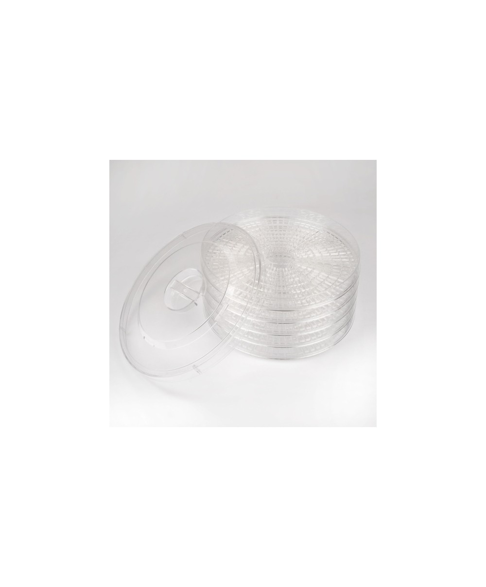 L’essiccazione è un ottimo metodo per mantenere intatte tutte le proprietà nutritive e organolettiche degli alimenti per poterli gustare anche fuori stagione. Grazie al nostro essiccatore Naturdry potrai facilmente disidratare oltre alla frutta, la verdura, le erbe e le spezie, anche funghi, carne e pesce conservandoli così più a lungo, senza l’uso di additivi e conservanti. Il sistema Naturdry è composto di cinque vassoi impilabili e trasparenti realizzati in plastica BPA FREE, che ti consentiranno di non mischiare i sapori e tenere sempre sotto controllo lo stato di disidratazione degli alimenti. La potente ventilazione assicura un flusso d’aria costante, e la temperatura regolabile consente un'essiccatura ottimale per ogni alimento, senza dover ruotare i vassoi.